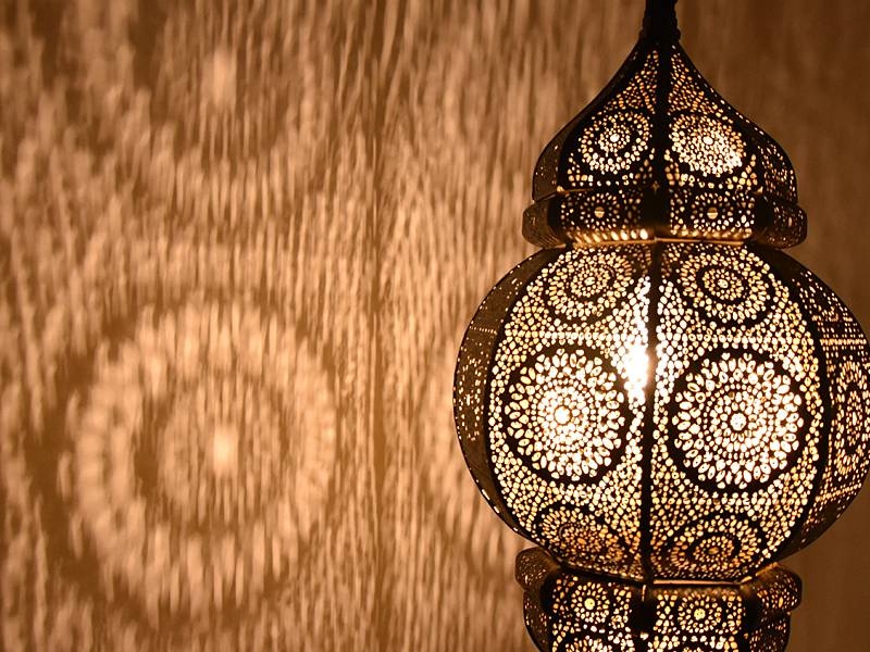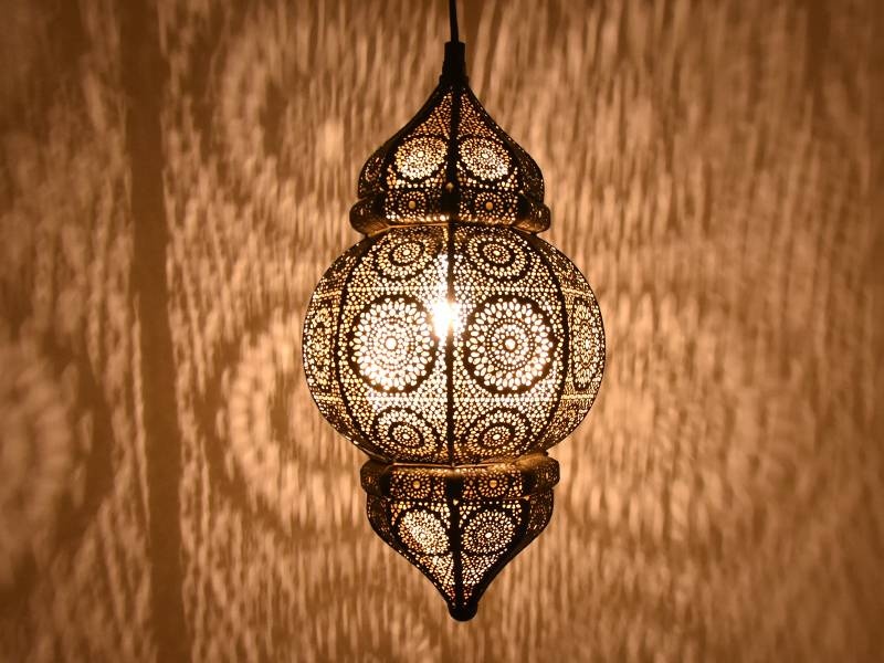 Die überraschend robuste Hängelampe mit orientalischen Mustern ist nicht nur robust, sondern vor allem sehr stimmungsvoll. Die Kette lässt sich einfach nach Wunsch verstellen, indem Sie eine Schraube verwenden. Auch die Lampe kann im Handumdrehen ausgetauscht werden, indem Sie einfach einen Schieber öffnen und die Unterseite aufklappen.