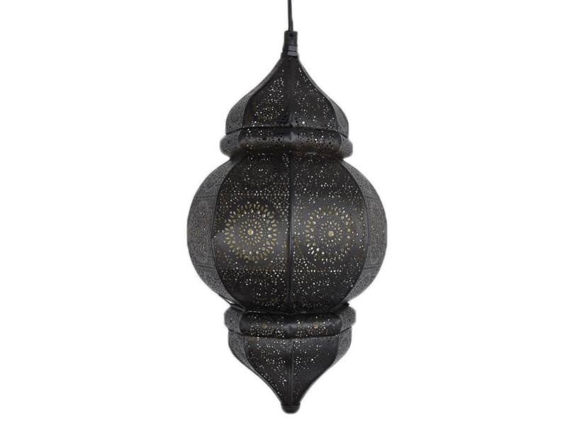 Kleines orientalisches Hängelämpchen in mattem Schwarz und warmem Gold - ideal, um in kleinen Räumen wie einem Kinderzimmer oder einer verlorenen Ecke im Haus eine gemütliche Atmosphäre zu schaffen. Die matte schwarze Außenseite verleiht eine orientalische Atmosphäre, während das goldene Innere eine warme Leuchtkraft bietet. Diese Lampe passt nahezu in jedes Interieur. Durch das überraschende Stimmungslicht verleiht die Lampe ein magisches Gefühl und mit der eleganten matten schwarzen Farbe fügt sie sich gut in eine industrielle Einrichtung ein. Aber auch in ländlichen Interieurs macht sie eine gute Figur. Mit der richtigen Lampe darin sehen Sie niedliche Blumenmuster an Wand und Decke leuchten (*siehe Empfehlung).