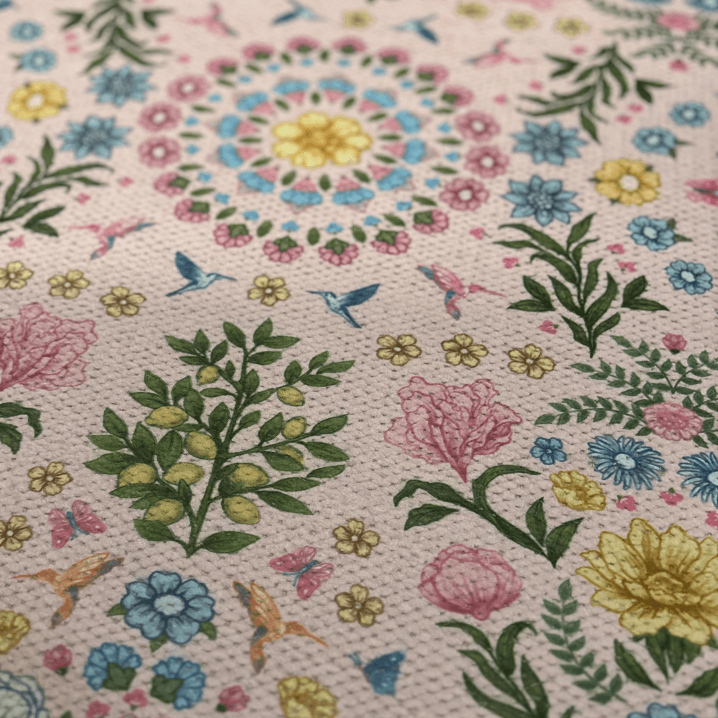 Stimmungsvolle Badematte mit zartrosa Hintergrund und gemütlichem Motiv mit Blumen und Schmetterlingen. Sehr fröhlich im Badezimmer, oder? Schön weich an den Füßen und ein echter Hingucker! speziell für Merel im Wunderland entwickelt.