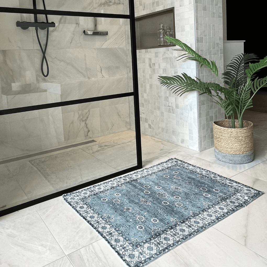Verleihe deinem Badezimmer mit diesem stimmungsvollen Badteppich einen Hauch von Eleganz. In einem warmen Petrolblau gehalten, wird er zu einem wahren Blickfang in deinem Badezimmer! Kombiniere den Badteppich mit dem Außenteppich und dem Läufer für ein harmonisches Gesamtbild.