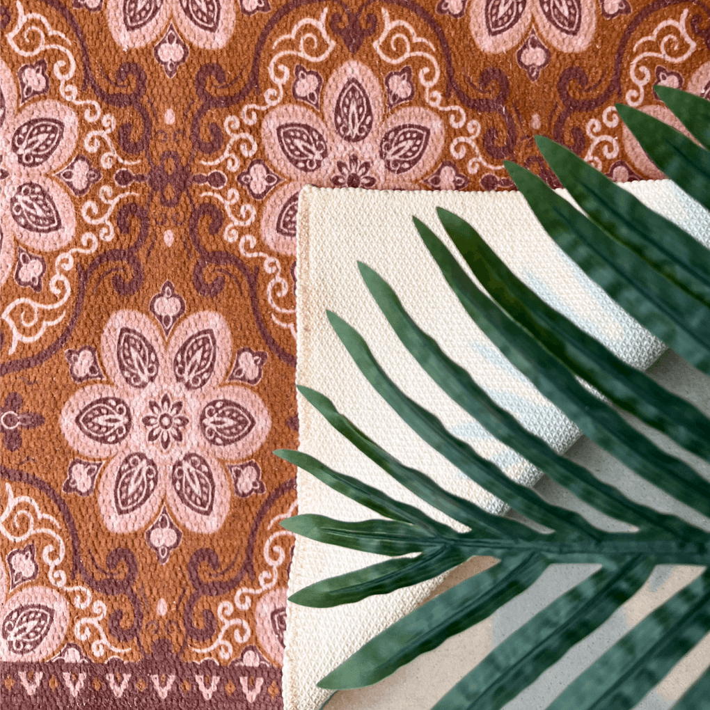 Eine Badematte mit einer warmen ockergelben/braunen Farbe und einem schönen Muster. Diese Badematte sorgt sofort für eine schöne und warme Atmosphäre im Badezimmer, wie schön ist das? Die Badematte fühlt sich angenehm weich an und verfügt über eine Anti-Rutsch-Matte, sodass sie schön und fest auf dem Boden bleibt.