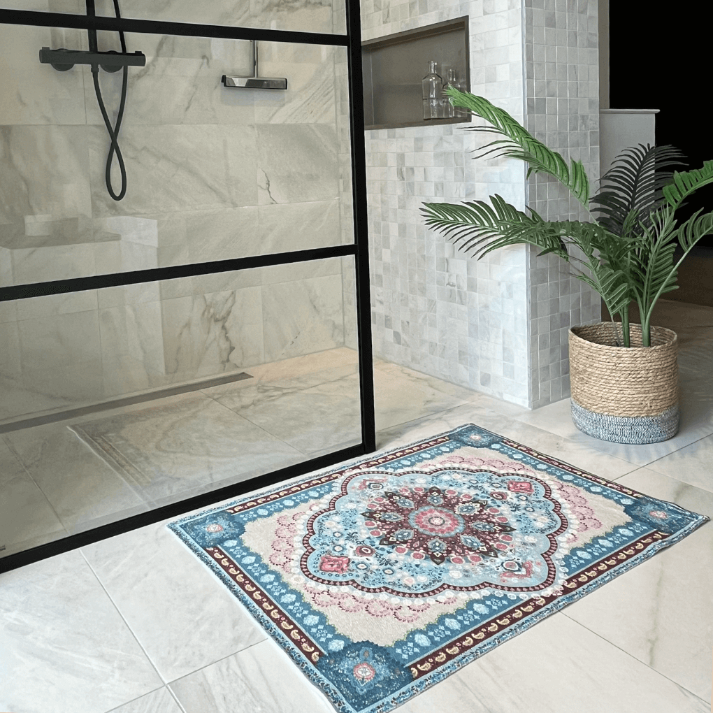 Schaffe eine zauberhafte Atmosphäre in deinem Zuhause mit unserem Badteppich im Wonder-Design, durchzogen von wunderschönen blauen und rosafarbenen Tönen! Mega cool im Badezimmer, aber auch als Türmatte verwendbar. Lass dieses Muster durch das ganze Haus verlaufen, indem du unseren Badteppich, den Außenteppich und den Innenteppich kombinierst. Erhältlich in verschiedenen Farben.