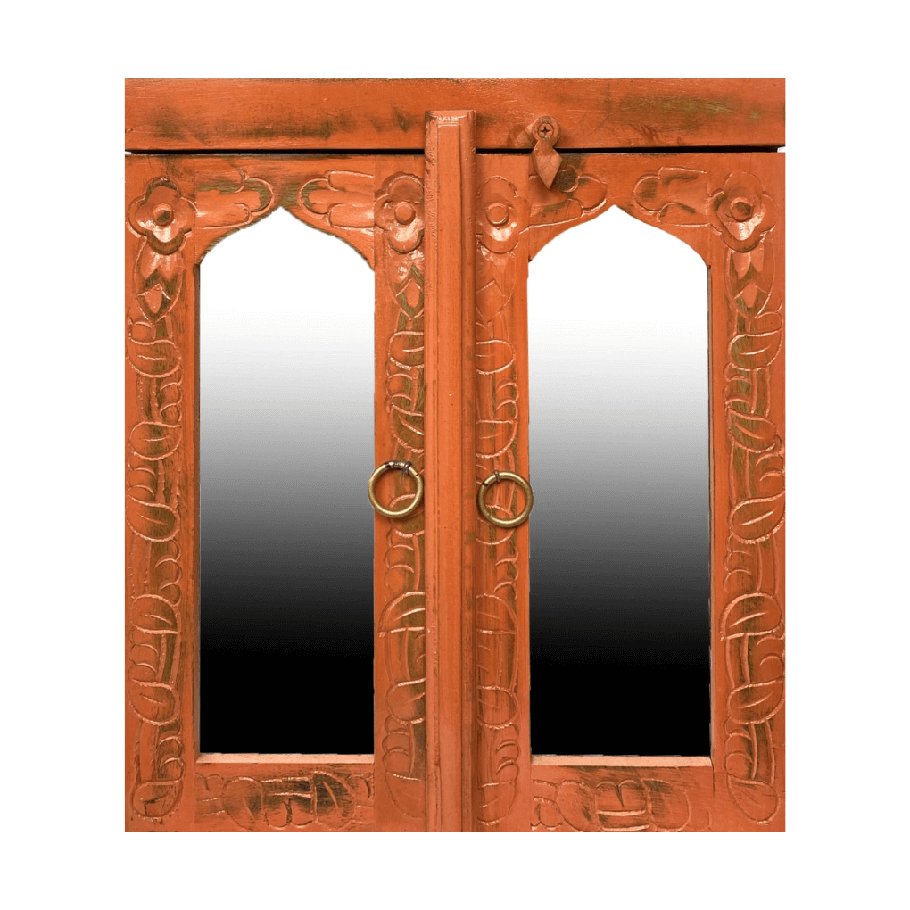 Der Schrank hat schöne Schnitzereien und ist aus massivem Mangoholz gefertigt. Das Schöne daran ist, dass Sie den Schrank nicht nur im Badezimmer verwenden, sondern ihn tatsächlich in jedem Raum im Haus gestalten und platzieren können. Es ist praktisch und super attraktiv!