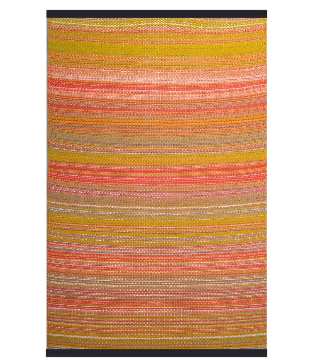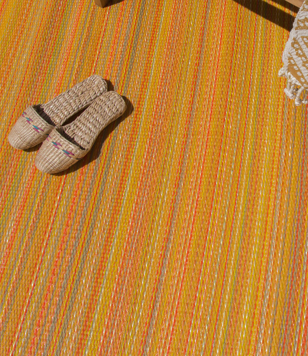 Outdoor-Teppich in Ockergelb und Orangetönen aus Kunststoff. Gelb- und Orangetöne Handgefertigt Fairer Handel Leicht zu reinigen