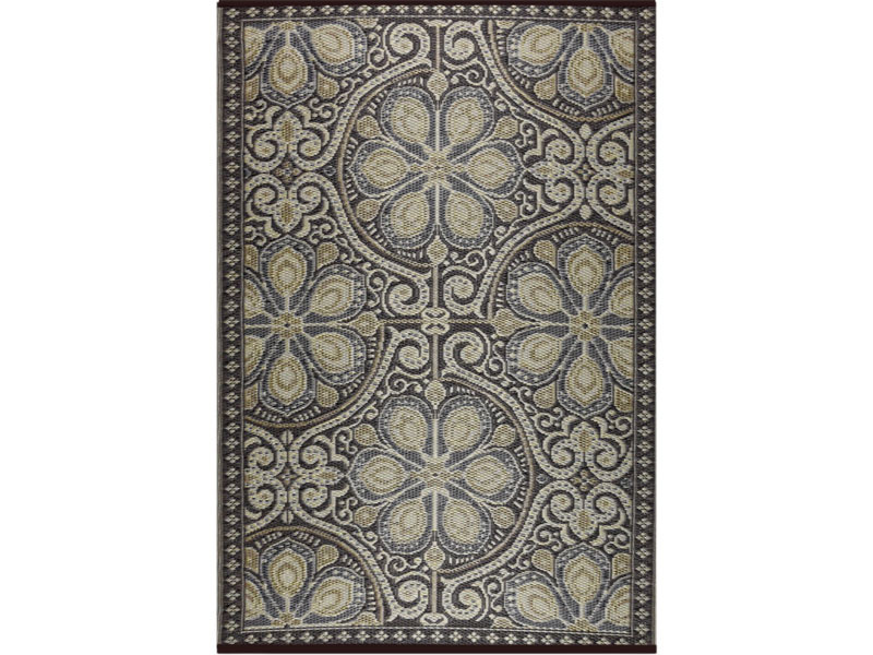 Braun-taupe und goldener orientalischer Stil Außenteppich mit kunstvoll eingewebten Mustern aus Kunststoff. Ein echter Stimmungsmacher im Garten und auf der Terrasse.Lesen Sie mehr