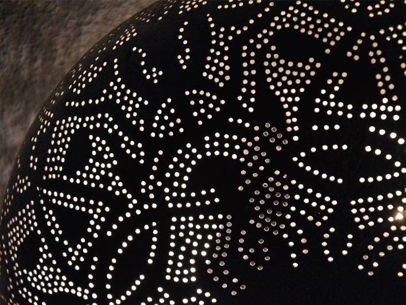Große Deckenleuchte 50 cm aus Metall im Vintage-Silber mit Hunderten kleiner Löcher, die durchscheinen.Lesen Sie mehr