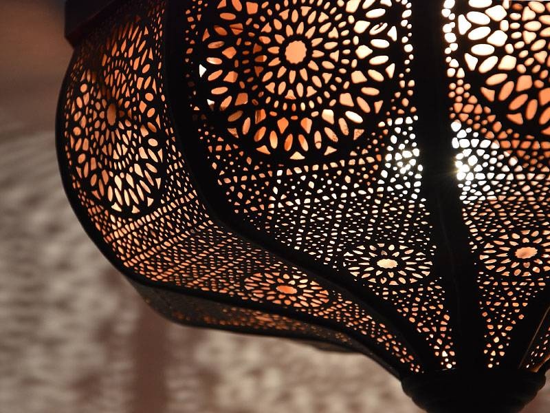 Empfehlung: Endlich die orientalische Deckenleuchte, nach der Sie schon so lange gesucht haben. Hier haben Sie sie gefunden! Es handelt sich um eine schöne Deckenlampe an sich, aber Sie möchten den Effekt des Fotos erzielen, und das ist leicht zu erreichen. Verwenden Sie einfach eine klare LED- oder Eco-Glühbirne. Wenn Ihnen das alles zu geschäftig und präsent ist, kein Problem - probieren Sie es mit einer Energiesparlampe oder einer Milchglaslampe aus. Dadurch wird die Lichtstärke deutlich reduziert, sodass die Muster verblassen und Sie das stimmungsvolle und romantische Licht der kupfernen Innenseite genießen können.