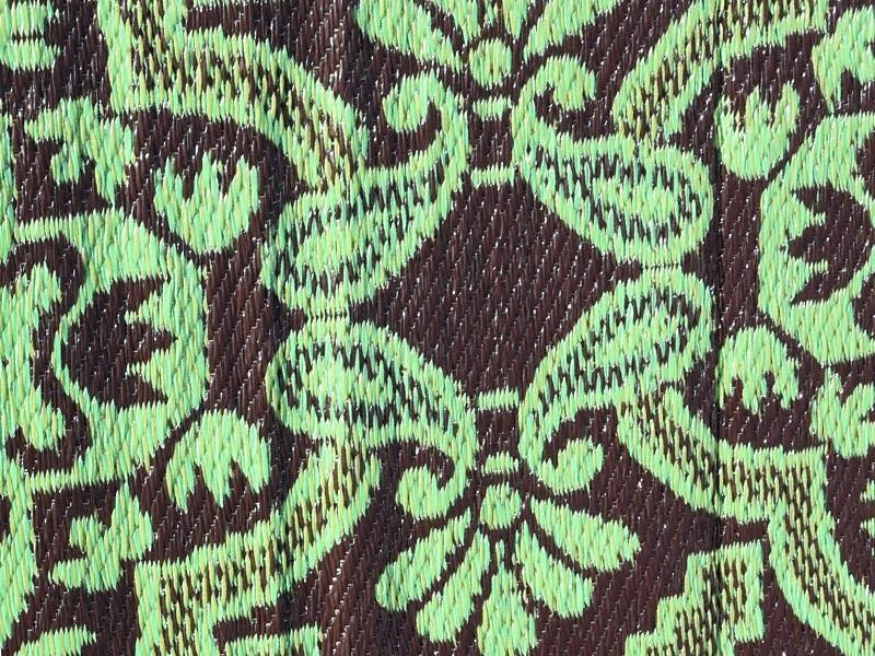 Großer grün-brauner Außenteppich für den Campingplatz.
