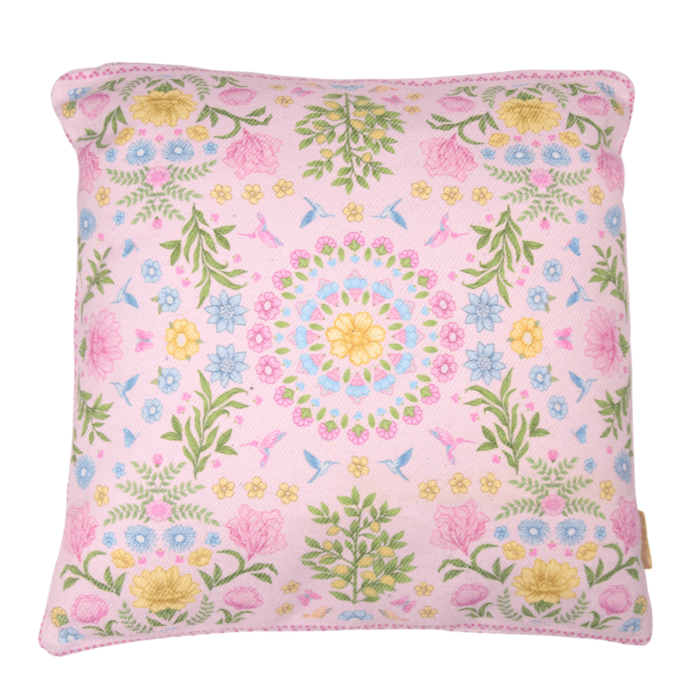 Attraktives Kissen mit unserem fröhlichen Gartendruck in einem frischen Rosaton! Ein perfekter Artikel für Ihre Couch.Lesen Sie mehr