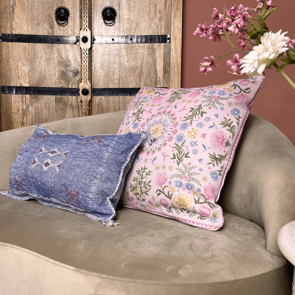 Stimmungsvolles Kissen mit unserem fröhlichen Gartendruck in einem frischen Rosaton! Ein perfekter Artikel für Ihre Couch. Im Gartendruck haben wir verschiedene Artikel wie: Outdoor-Teppiche, Palettenkissen und Läufer. Auf diese Weise können Sie das Design wieder in Ihr Zuhause bringen und endlich kombinieren! Das Kissen besteht aus Baumwolle und fühlt sich angenehm weich an.