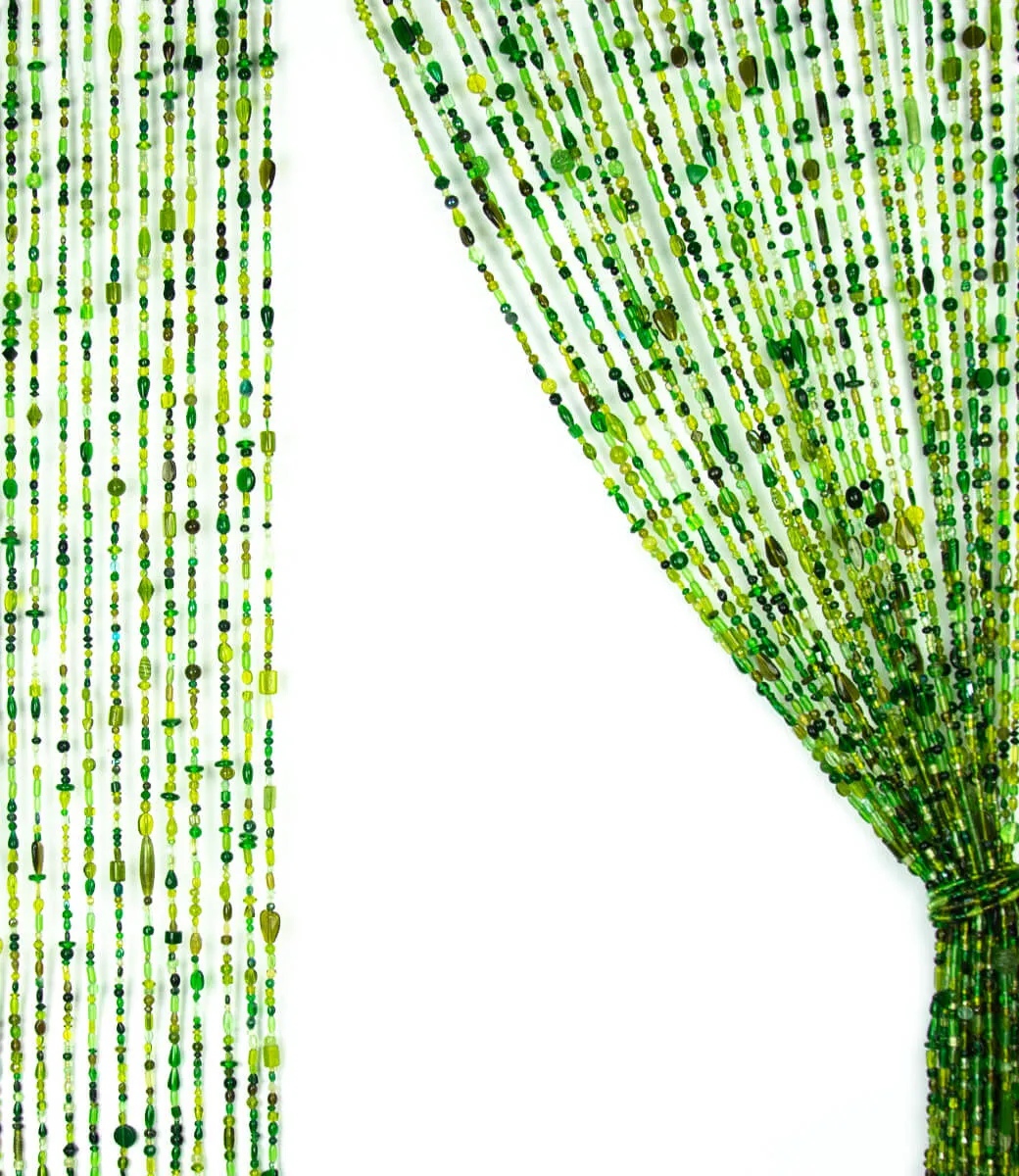 Grüner Glasperlenvorhang Indien Die indischen Glasperlenvorhänge sind in allen Farben erhältlich. Die Farbe kann leicht von der Abbildung abweichen, da es sich um handgefertigte Glasperlenvorhänge handelt. Die Standardgröße beträgt 90 cm in der Breite und 200 cm in der Länge, inklusive des Aufhängesystems