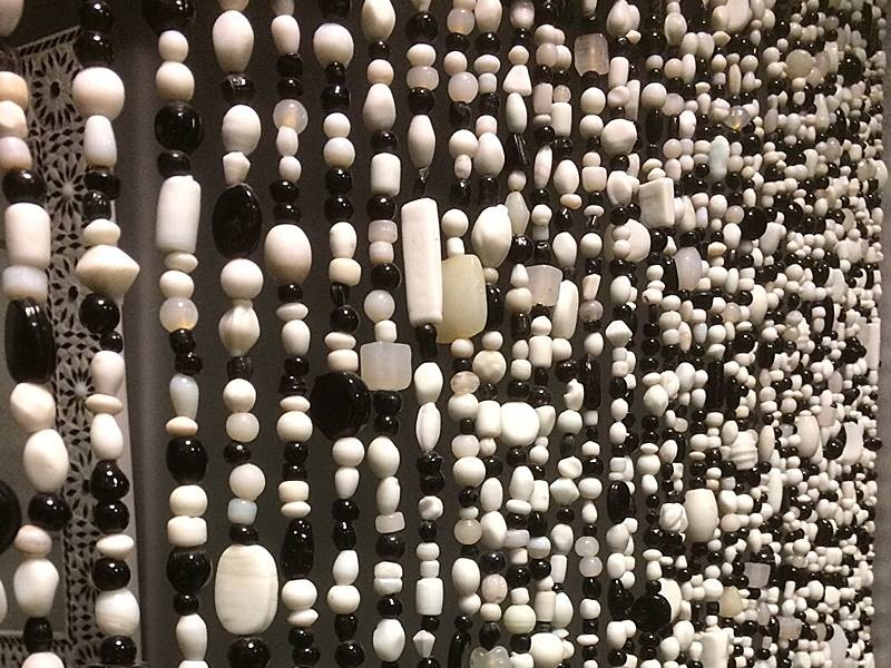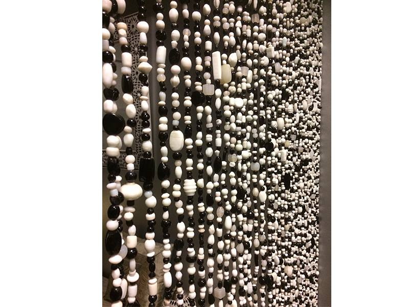 Glasperlenvorhang Schwarz-Weiß. Ein Glasperlenvorhang in Schwarz-Weiß mit fröhlichen verschiedenen Perlen in verschiedenen Größen für einen fröhlichen Effekt und praktisch, um Insekten draußen zu halten. Er hängt gemütlich und atmosphärisch im Haus und hält natürlich Ungeziefer aus Ihrer Küche fern. Diese Glasperlen sind handgefertigt in Indien, und jede Strang hat eine Glocke unten für einen verspielten Effekt. Der Perlenvorhang besteht aus 40 Strängen. Auf Anfrage sind auch andere Größen erhältlich. Praktisch ist auch, dass Sie alles komplett mit einem eisernen Aufhängesystem erhalten, das Sie mit nur 2 Schrauben befestigen. Sie erhalten 40 Stränge und ein Aufhängesystem. Wenn Sie eine Embrasse wünschen, können Sie diese separat bestellen. Mit diesem Vorhang können Sie die Türöffnung im Handumdrehen stilvoll gestalten.