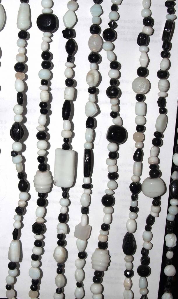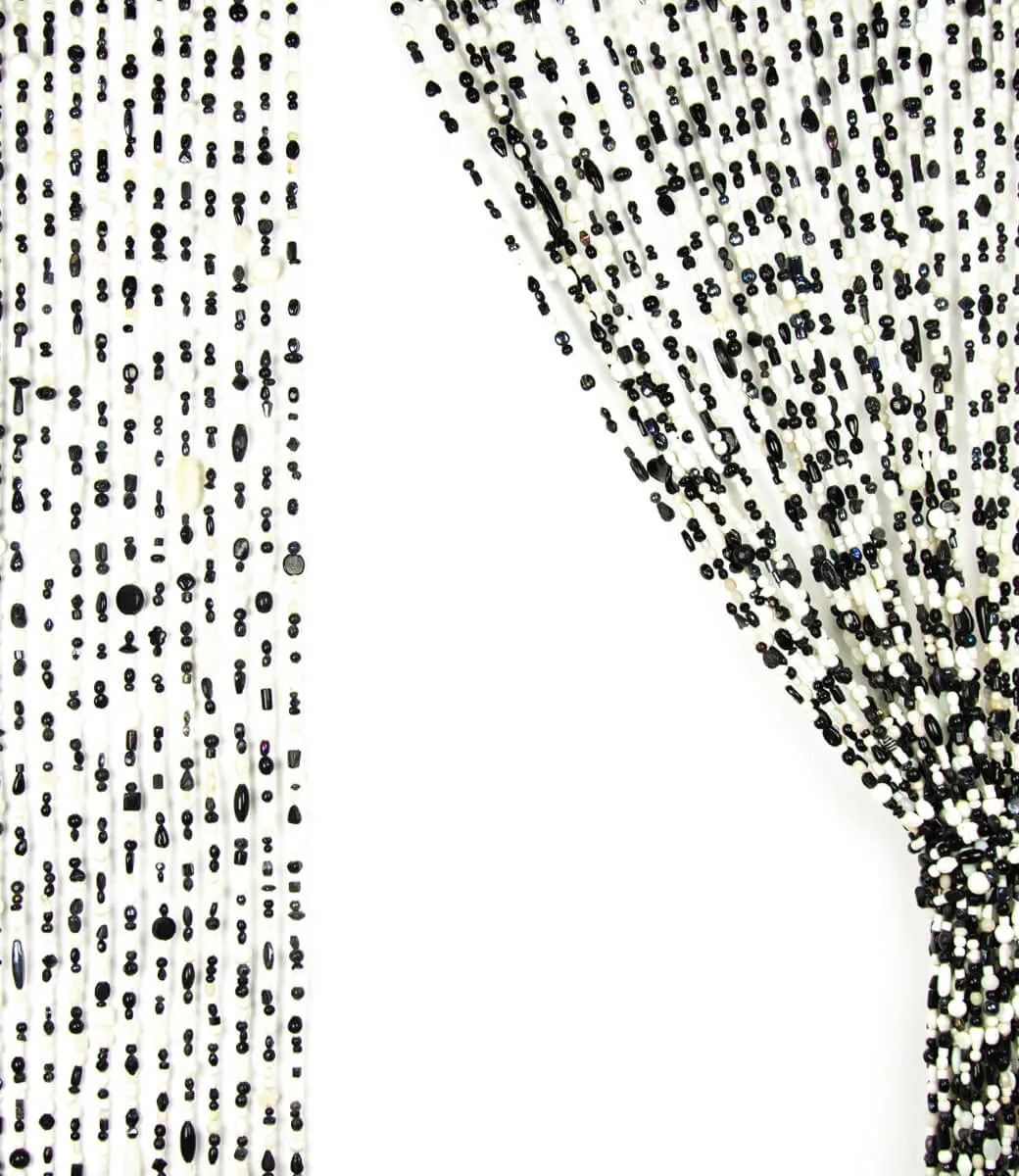 Schwarz-weißer Glasperlenvorhang Indien Die indischen Glasperlenvorhänge sind in allen Farben erhältlich. Die Farbe kann leicht von der Abbildung abweichen, da es sich um handgefertigte Glasperlenvorhänge handelt. Die Standardgröße beträgt 90 cm in der Breite und 200 cm in der Länge, inklusive des Aufhängesystems.