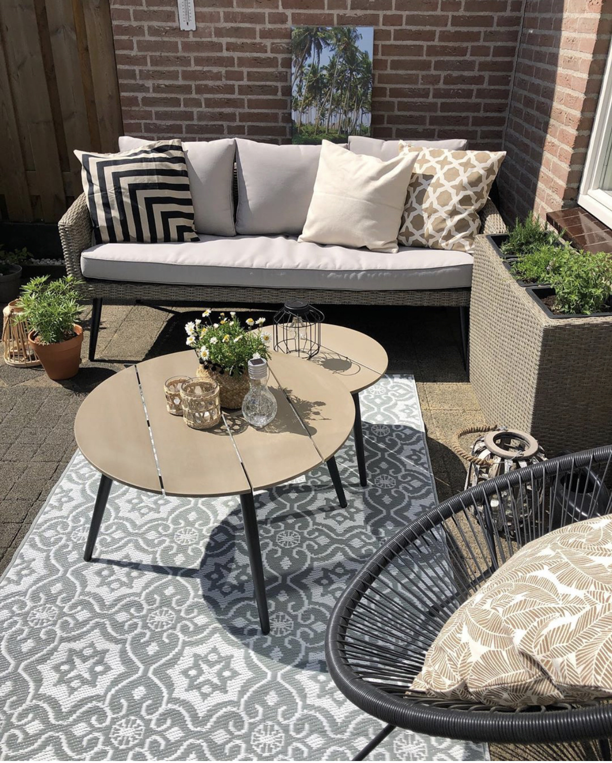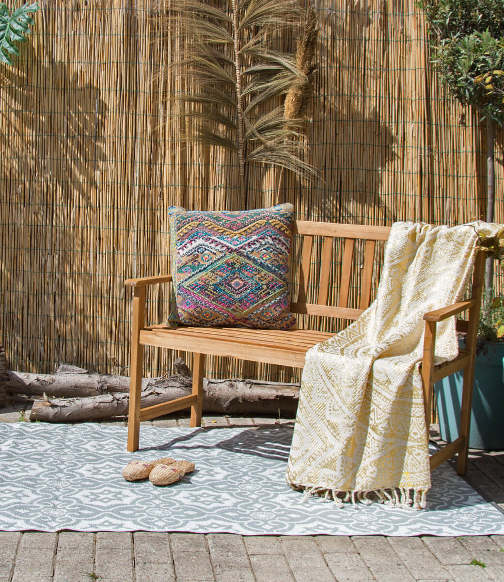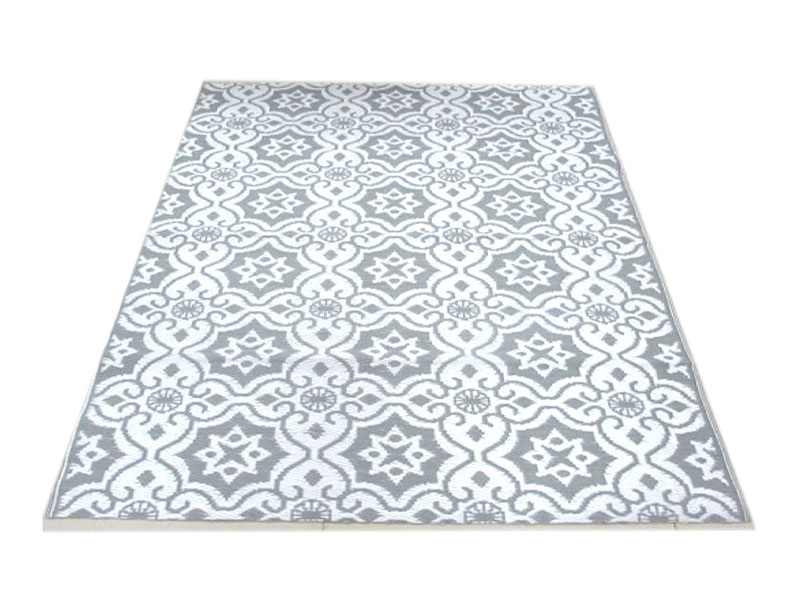 Praktischer und leichter Outdoor-Teppich in Grau-Weiß. Ideal für Camping, Picknicks und vieles mehr. Leicht mit Wasser abzuwischen und mit UV-Schutz für den Außenbereich.