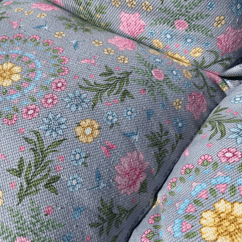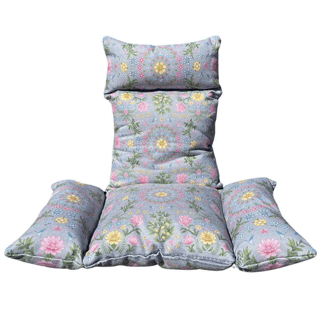 Das perfekte Kissen für Ihren Hängesessel! In so einem Hängesessel lässt es sich natürlich wunderbar entspannen, aber wie gemütlich ist es, wenn darin ein buntes Kissen von Merel im Wunderland liegt? Das Kissen hat eine wunderschöne lavendel-/graue Farbe in Kombination mit einem mega fröhlichen Aufdruck mit Vögeln und Blumen