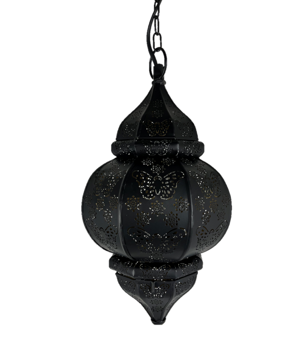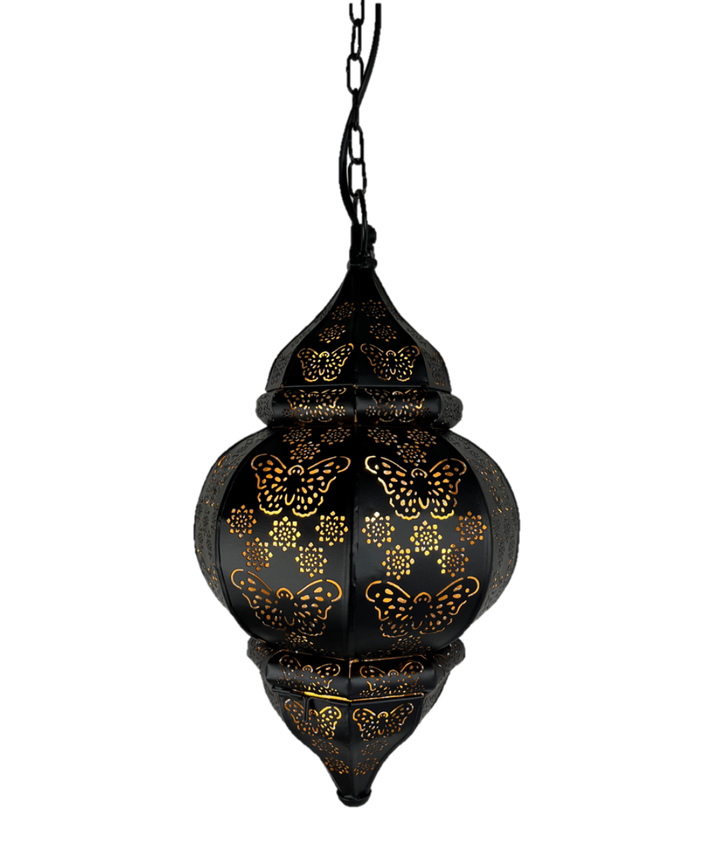 Lass dich von dem wunderschönen Schmetterlingsmuster verzaubern, das erscheint, sobald du die Lampe einschaltest. Diese Hängelampe hat eine schwarze Außenseite und eine goldene Innenseite mit prachtvollen Schmetterlingen. Perfekt für das Kinderzimmer oder als stimmungsvolle Lampe im Wohnzimmer.