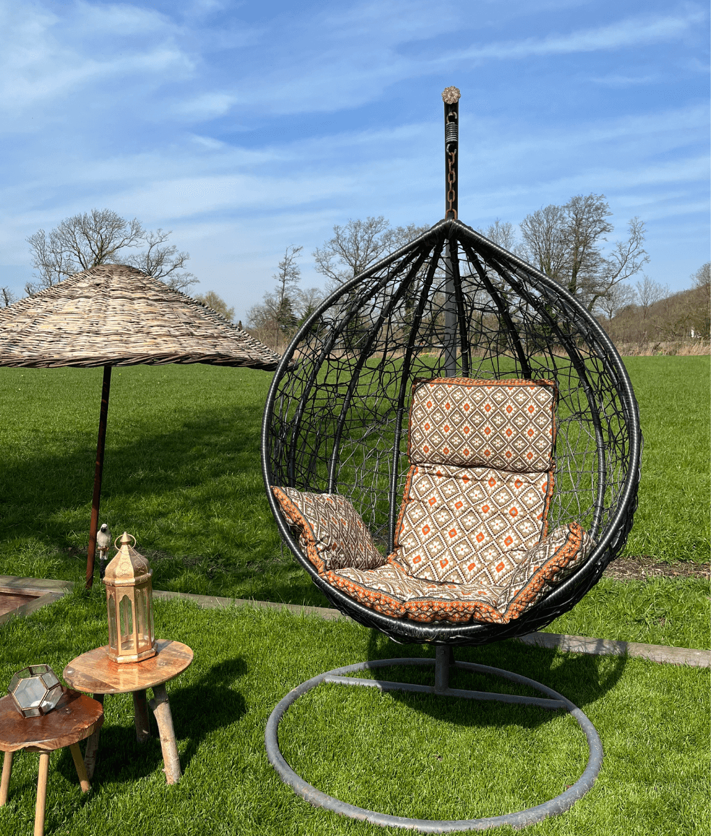 Ein wunderschönes Kissen für den Hängesessel. Solche trendigen Hängesessel sieht man natürlich überall, aber wie schön ist es, wenn darin ein fröhliches Kissen mit einem gemütlichen Muster liegt? Dieses Kissen ist mit unserem Oriental-Print versehen. Frische deinen Garten mit diesem Blickfang auf.