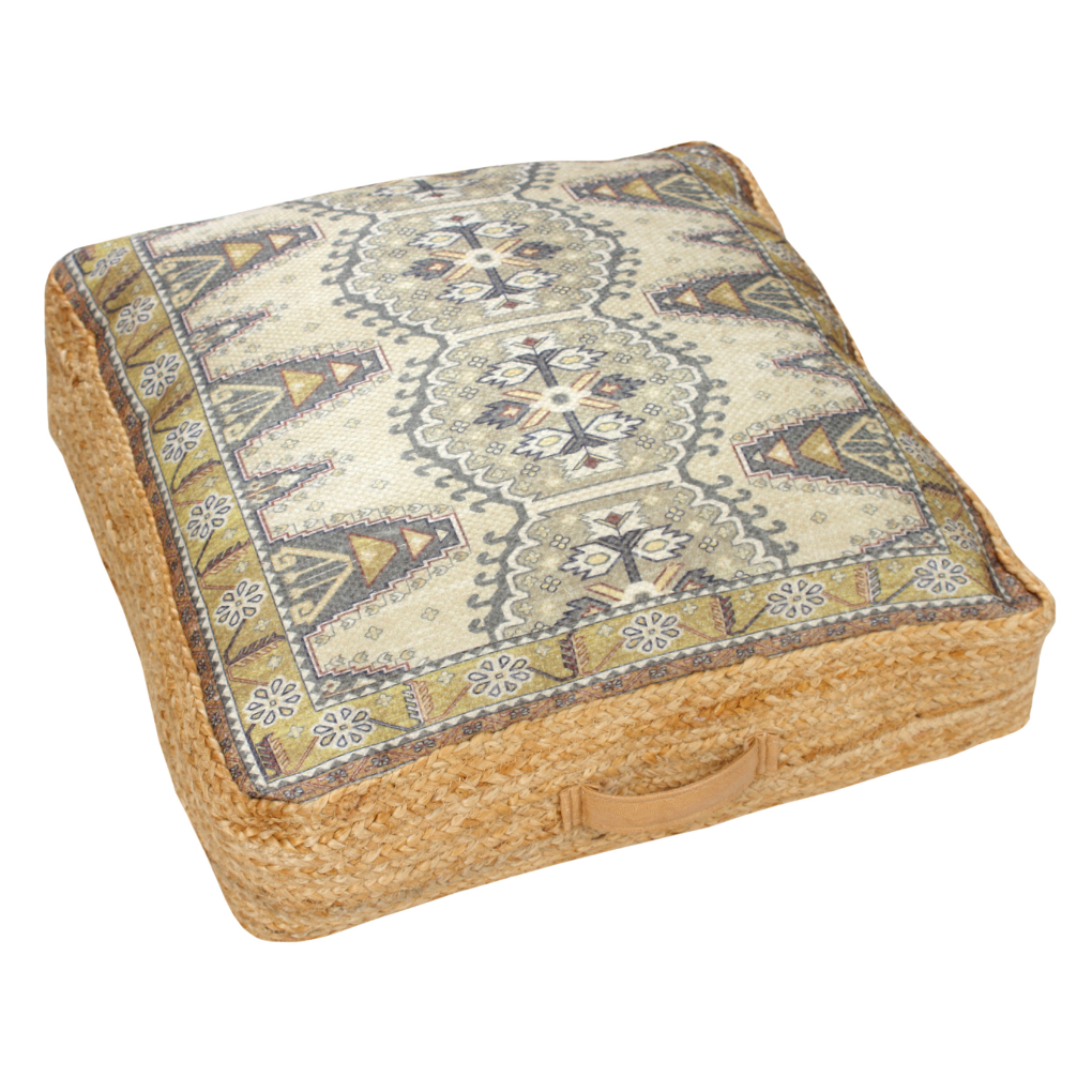 Bunter Hocker mit unserem Rocco-Druck. Hergestellt aus Jute und mit einem fröhlichen Muster oben drauf. Machen Sie Ihren Garten oder Ihr Wohnzimmer gemütlicher mit diesen bequemen Matratzenkissen.Lesen Sie mehr