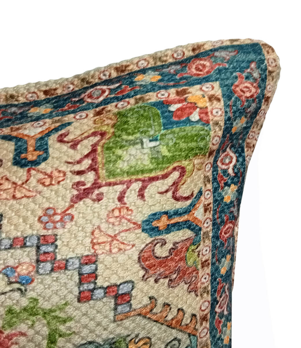 Quadratisches 50 x 50 cm PET-Kissen mit Sherry-Druck in einer warmen Farbkombination.Lesen Sie mehr