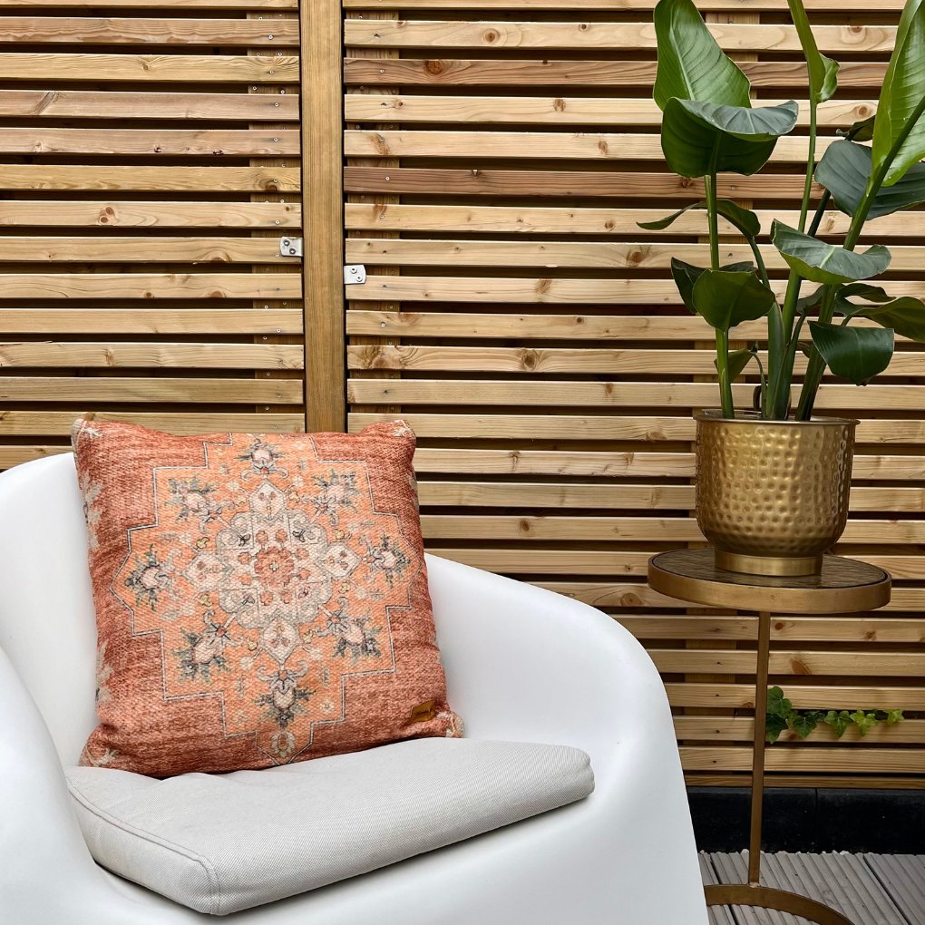 Ein orientalischer, farbenfroher Druck ist auf dieses Hundekissen gedruckt. Durch die warmen Farben sorgt das Kissen für eine gemütliche Atmosphäre. Die Größe beträgt 50 x 50 cm – also schön groß und perfekt für das Sofa. Es gibt auch einen passenden Teppich aus PET, ideal zum Kombinieren. Handgefertigt in Indien und mit dem Care & Fair-Label.
