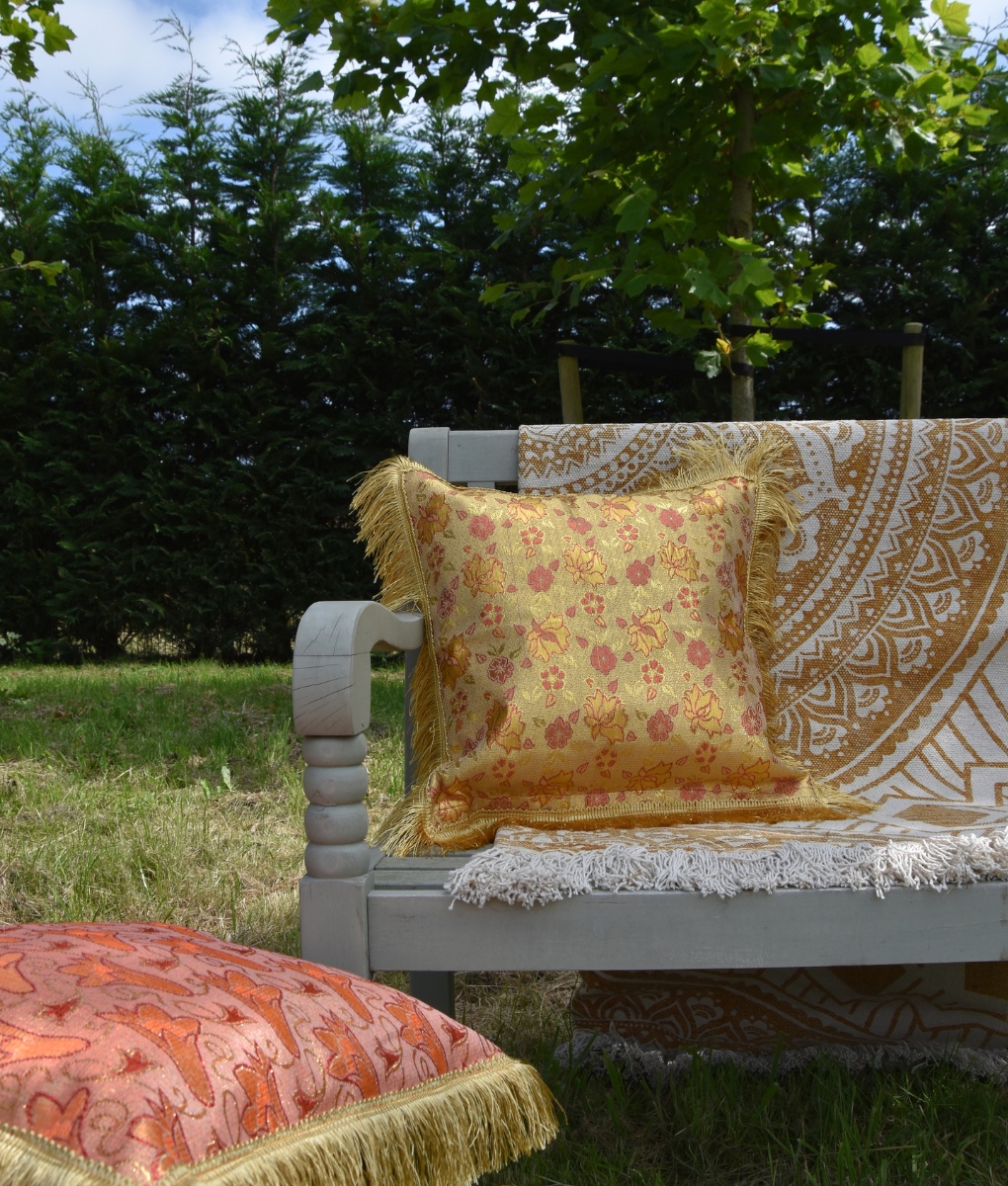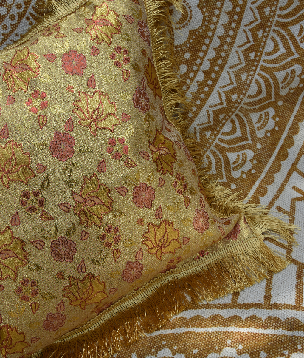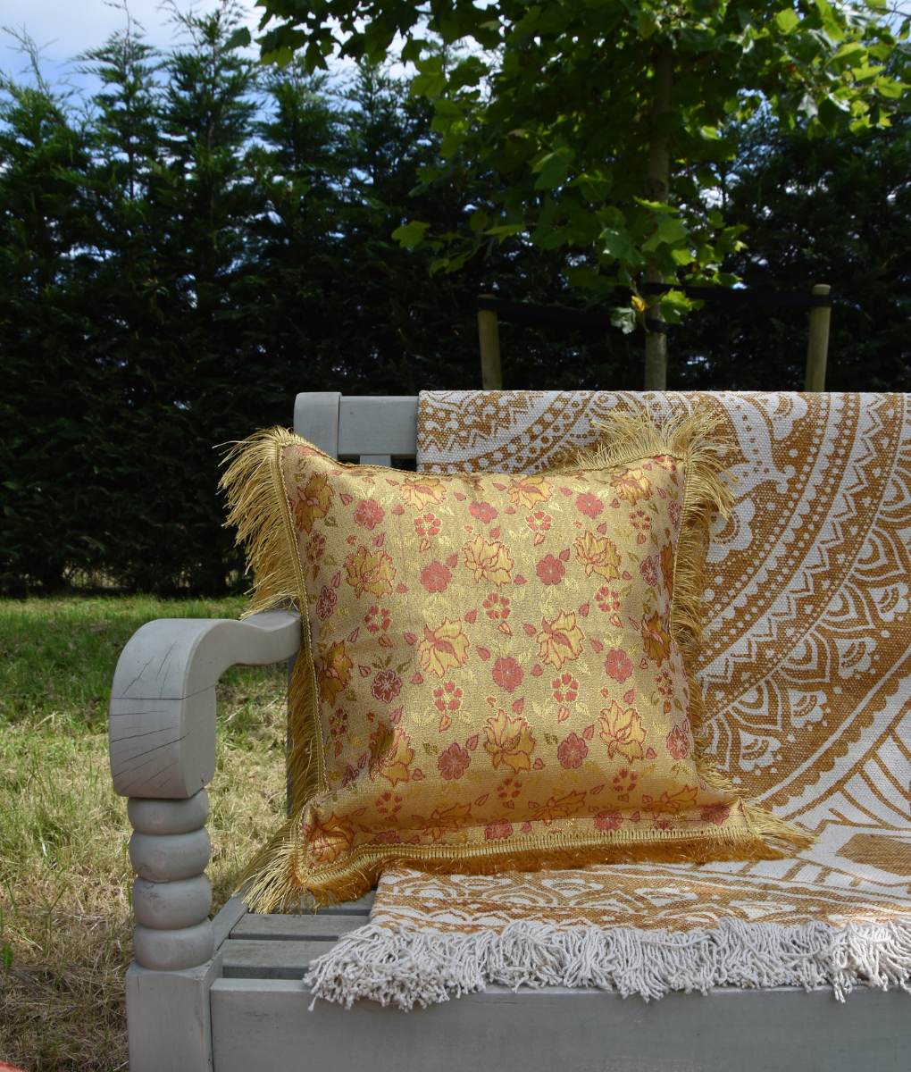 Ein attraktives Kissen für das Sofa. Ausgestattet mit einer goldgelben Farbe in Kombination mit roten Details und dem schönen Muster fällt es auf! Dieses Dekokissen verleiht einen luxuriösen Look und ist ein echter Hingucker!