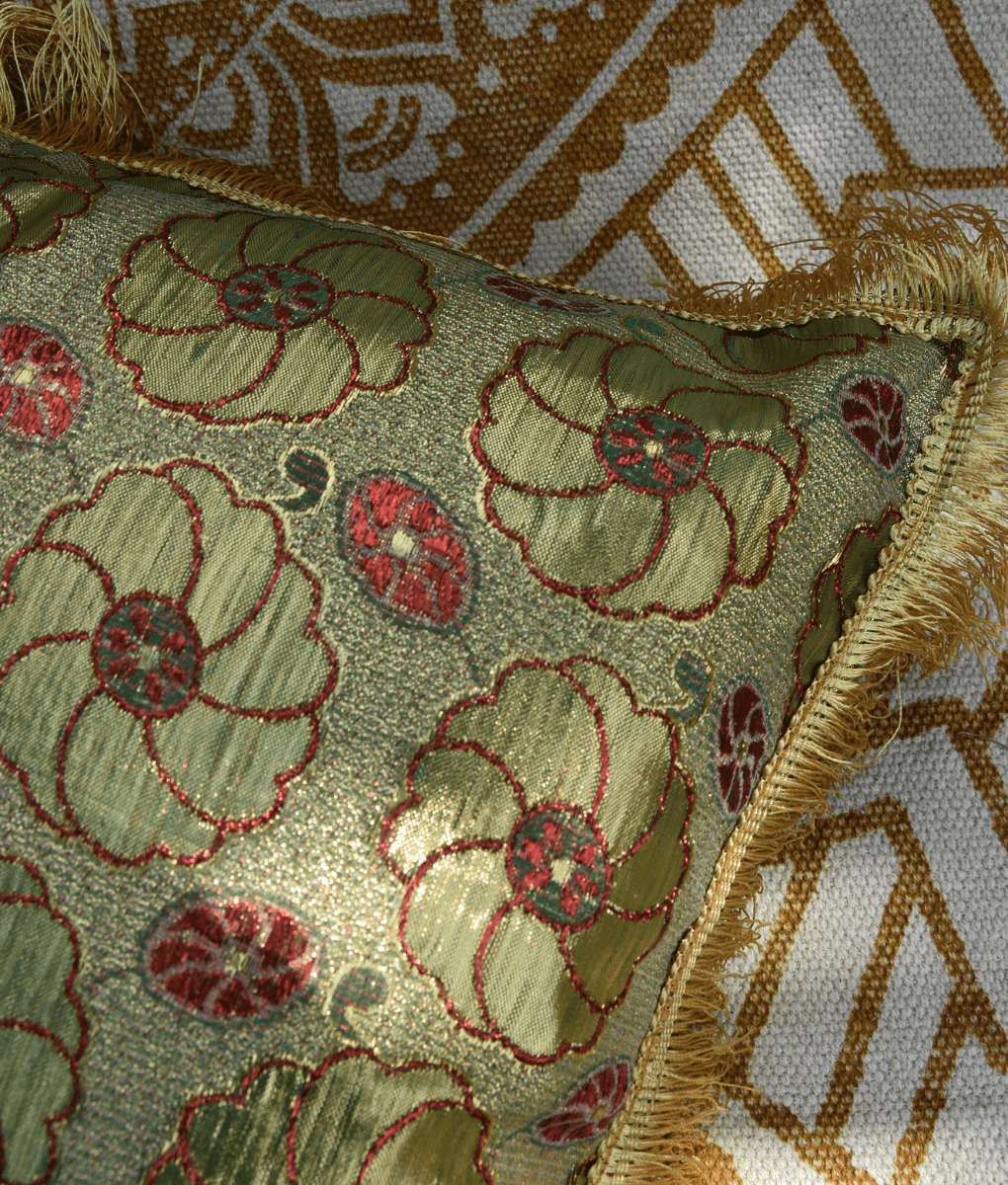 Luxuriöses Bali-Kissen - Blumenbombengrün