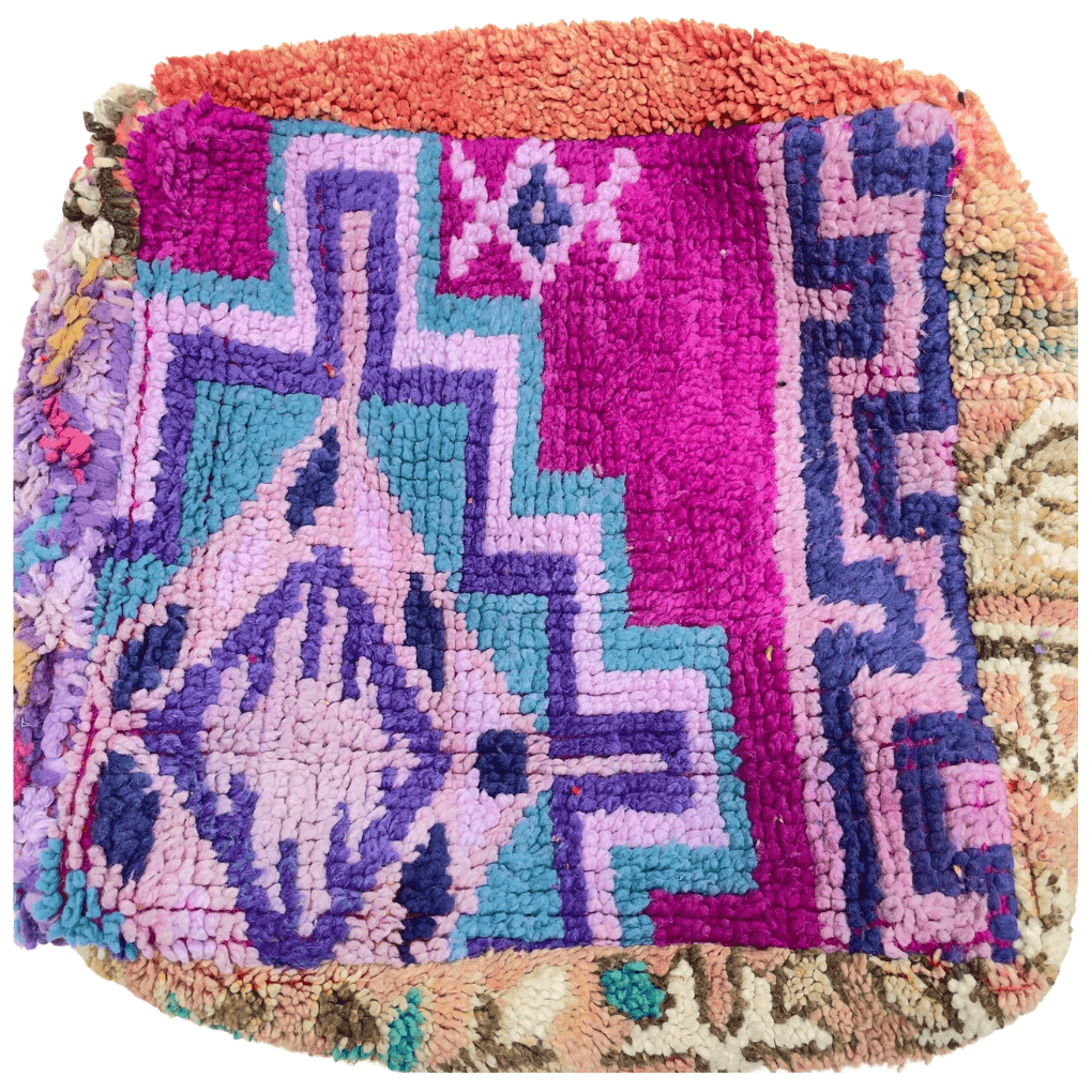 Handgefertigter marokkanischer Pouf in tiefvioletter Farbe und mit anderen farbenfrohen Details. Sehr stimmungsvoll in Ihrem Interieur!