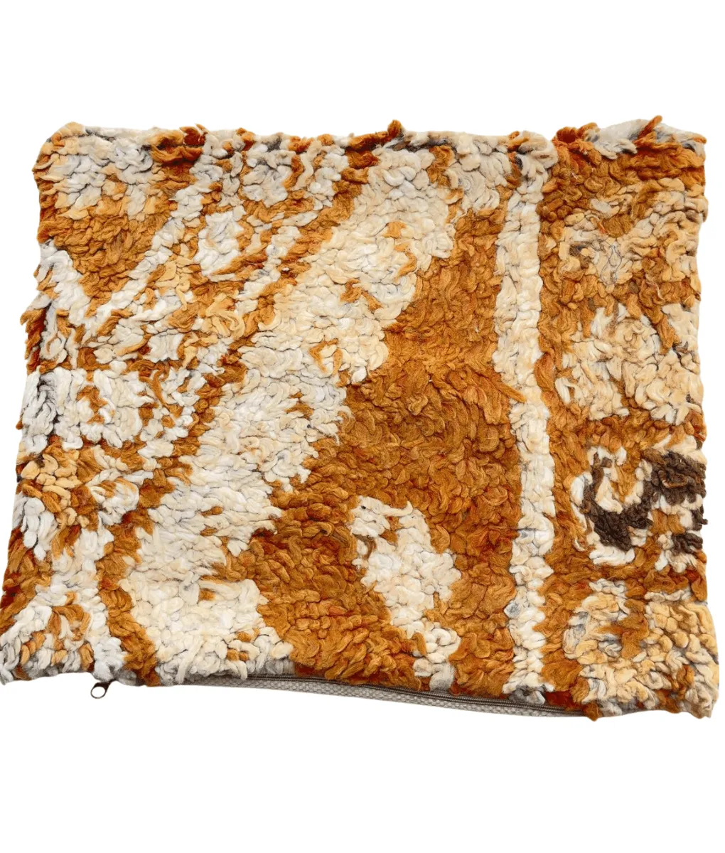Ein stimmungsvolles marokkanisches Kissen, mit fröhlichen Farben und einem wunderschönen Muster. Herrlich weich für das Sofa oder das Bett. Hergestellt aus alten Berber-Teppichen, wodurch jedes Kissen ein Unikat ist.
