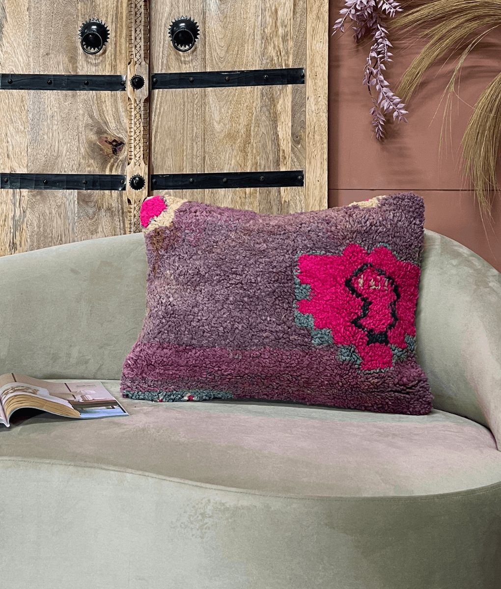 Stimmungsvolles marokkanisches Kissen mit weichem Wollstoff und fröhlichen Farben. Schön weich für die Couch! Handgefertigt im Atlasgebirge.