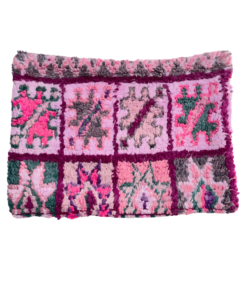 Marokkanisches Kissen mit leuchtenden Farben und gemütlichem Motiv. Passt voll und ganz in die heutigen Trends! Handgefertigt im Atlasgebirge Marokkos.