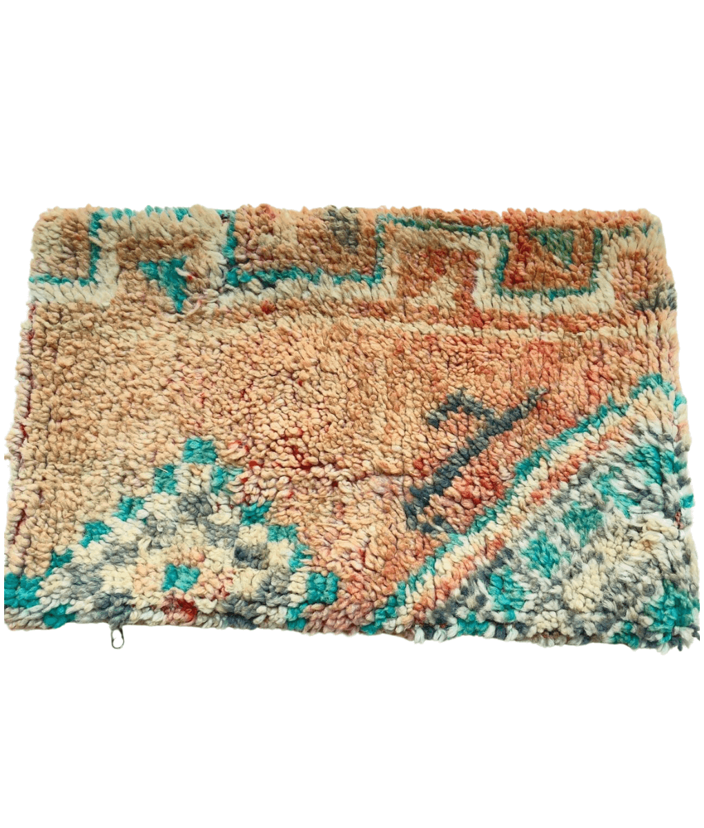 Gemütliches marokkanisches Kissen in Beige in Kombination mit Grau- und Grüntönen. Ein echtes Berberkissen aus dem Atlasgebirge!Lesen Sie mehr