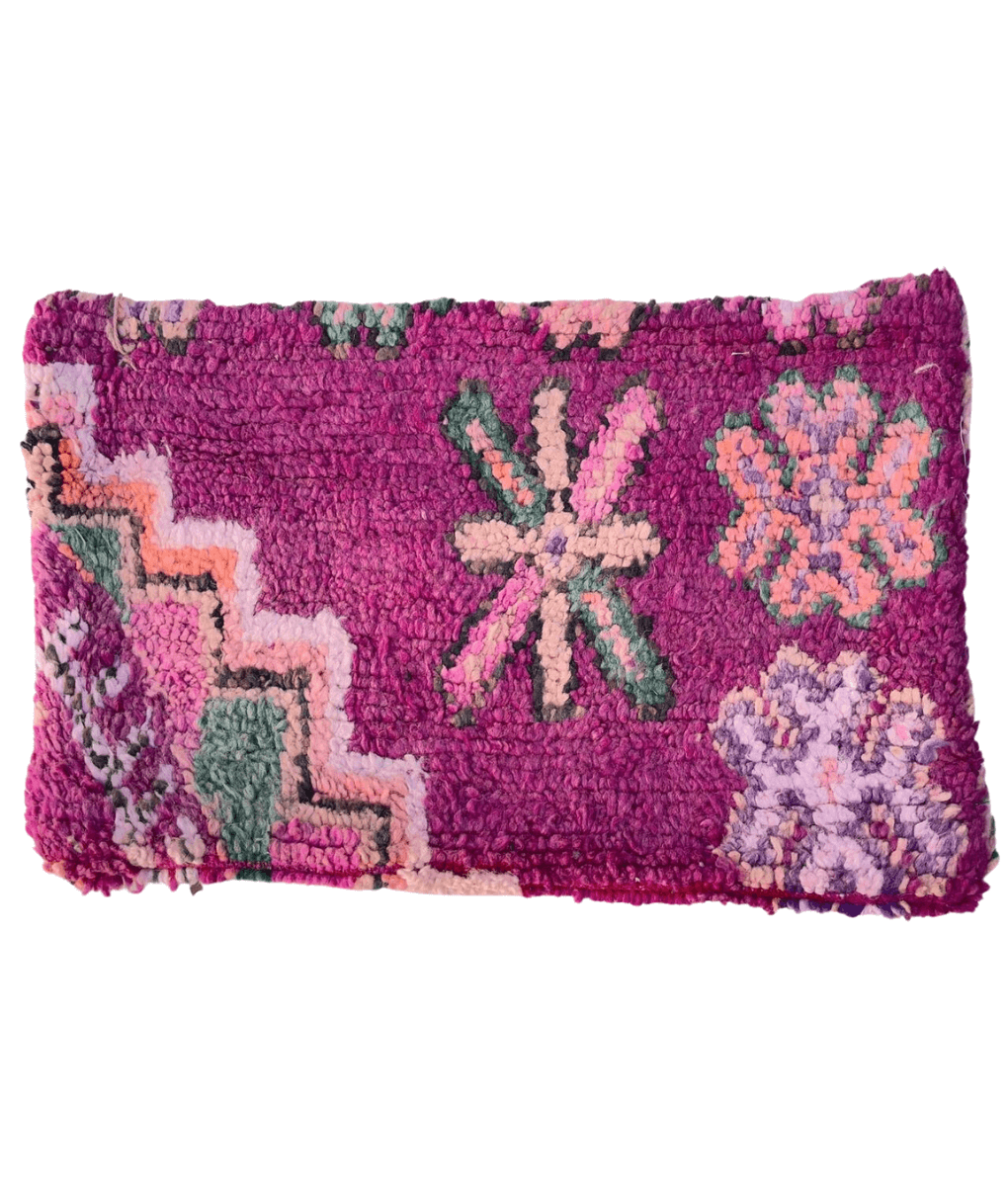 Gemütliches marokkanisches Kissen in fröhlichem Lila. Passt perfekt zu den heutigen Trends! Schön weich und auch perfekt als Kissen für Ihren liebsten Vierbeiner! Handgefertigt in Marokko aus alten Berberteppichen.