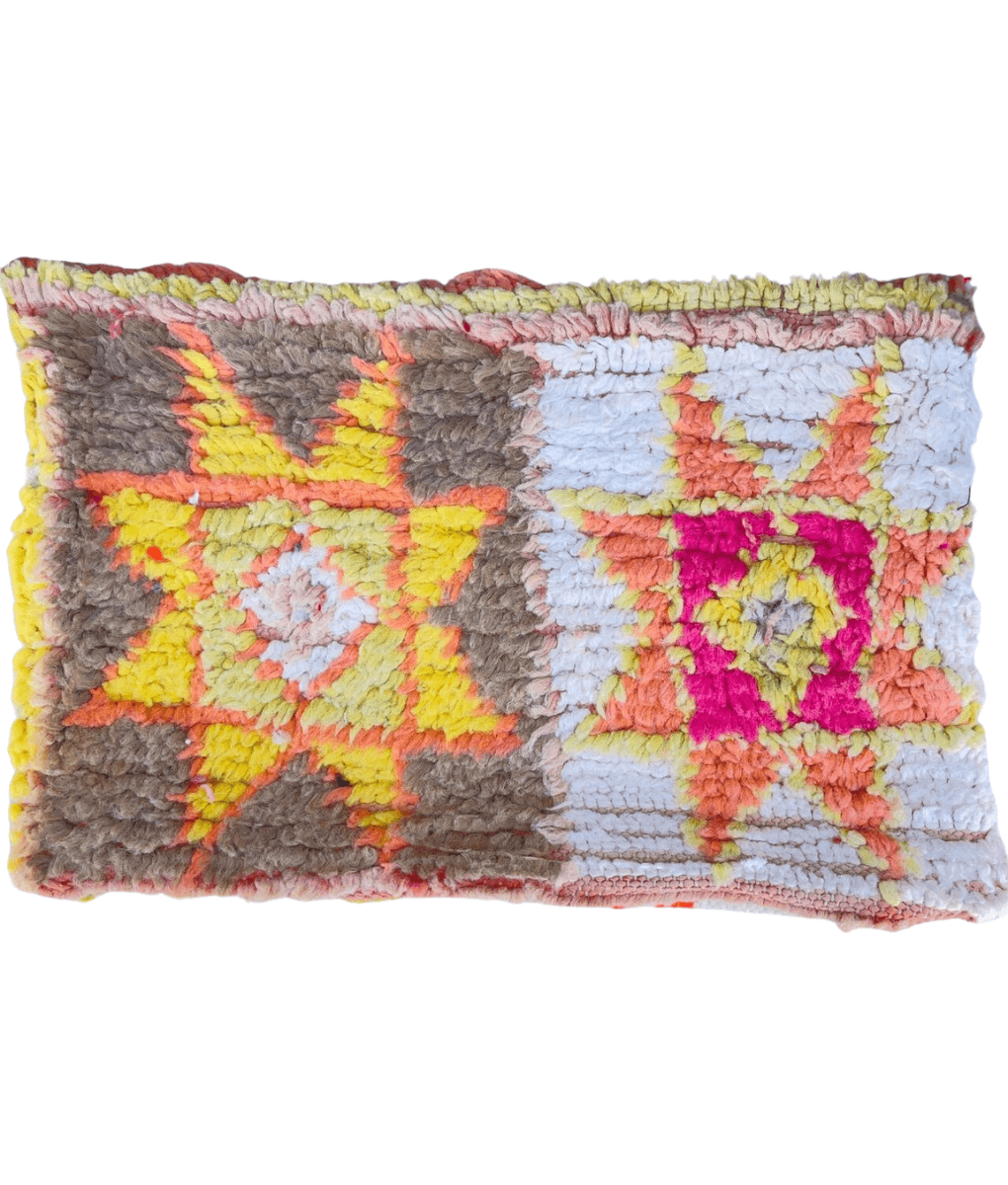 Schönes weiches marokkanisches Kissen mit fröhlichen orange/gelben Farben. Schön weich für die Couch! Handgefertigt im Atlasgebirge.
