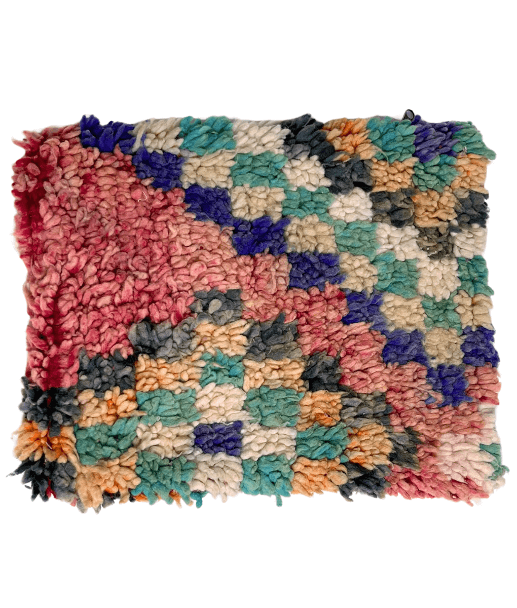 Marokkanisches Kissen mit fröhlichen Farben. Herrlich weich für die Couch! Handgefertigt im Atlasgebirge von Marokko.