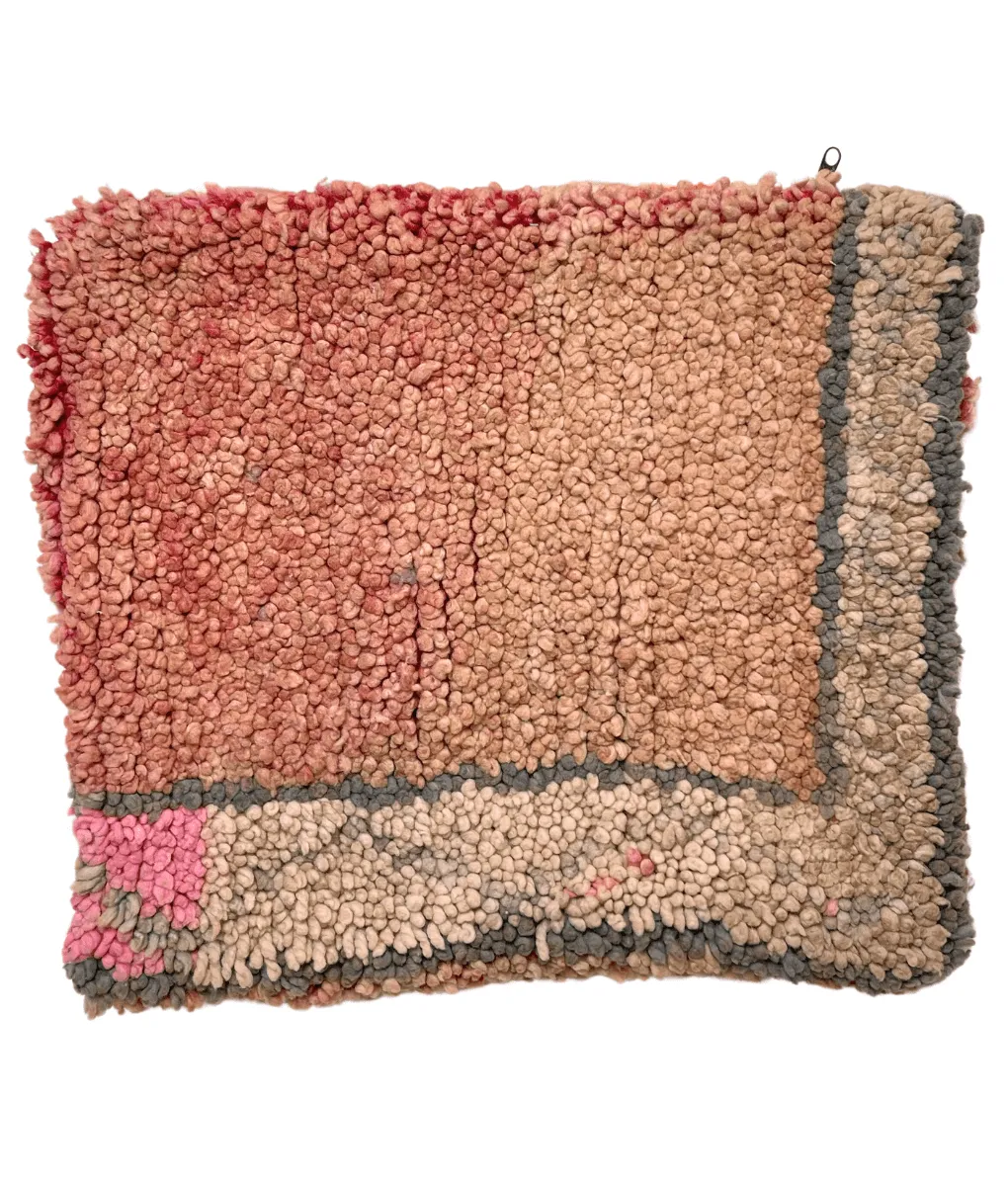 Marokkanisches Kissen in einem sanften Beigeton mit hellbraunen/gelben Details. Verziert mit einem schönen Sternmuster. Herrlich weich für die Couch oder das Bett! Handgefertigt im Atlas-Gebirge.
