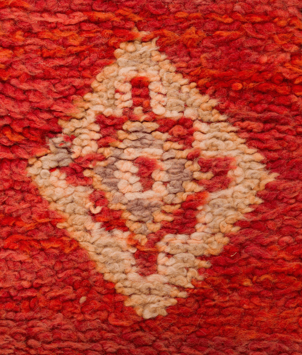 Wunderschöner marokkanischer Beni Mguild-Teppich. Ausgestattet mit einer kräftigen Rot-/Orangetönung und wunderschönen Details. Perfekt im Einklang mit den aktuellen Trends! Ein echtes Vintage-Teppich, handgefertigt im Atlasgebirge von Marokko.