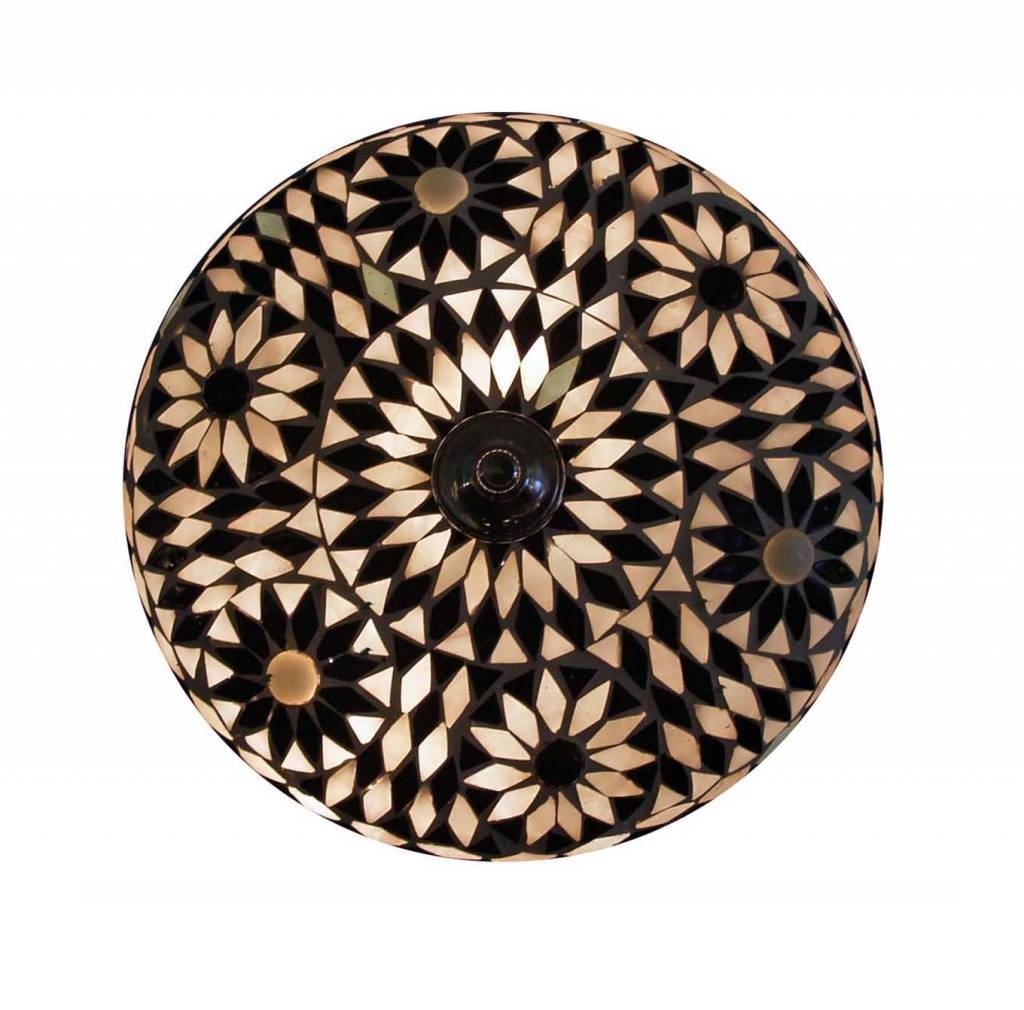 Stimmungsvolle Marrakesch-Design-Plafonnière in Schwarz-Weiß in kleiner Größe, orientalische Beleuchtung aus GlasmosaikLesen Sie mehr
