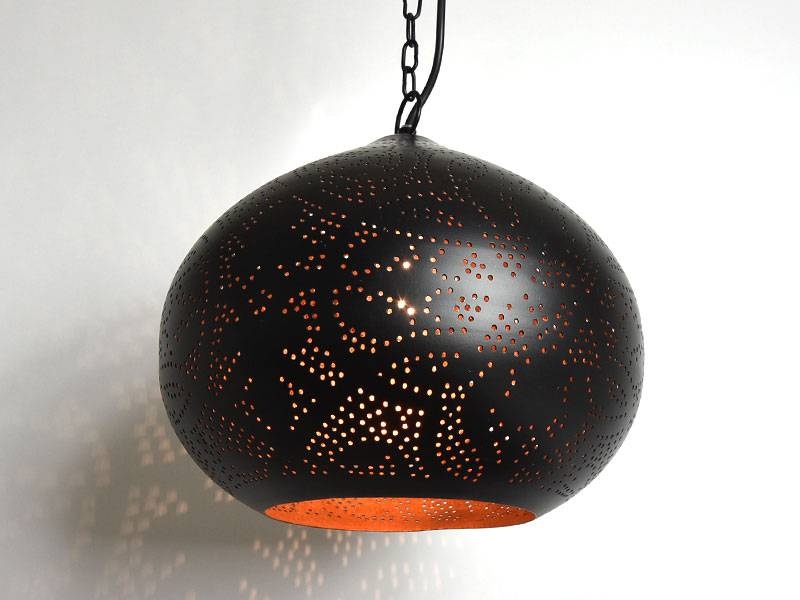Orientalische filigrane Hängelampe in Schwarz und Kupfer