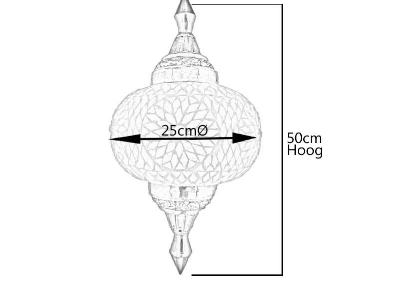 Eine orientalische Mosaiklampe, um in Ihrem Zuhause eine stimmungsvolle Atmosphäre zu schaffen. Handgefertigt mit schönen blauen (türkischen Design) Mosaikmustern. Diese funkelnde Hängelampe spendet warmes und farbenfrohes Licht. Die orientalischen Kürbis-Hängelampen sind immer einzigartig, keine Hängelampe ist identisch. Die Kürbislampe ist mit einer Fassung ausgestattet, in die eine Lampe mit maximal 40 Watt eingeschraubt werden kann, und diese Hängelampe ist CE-gekennzeichnet.
