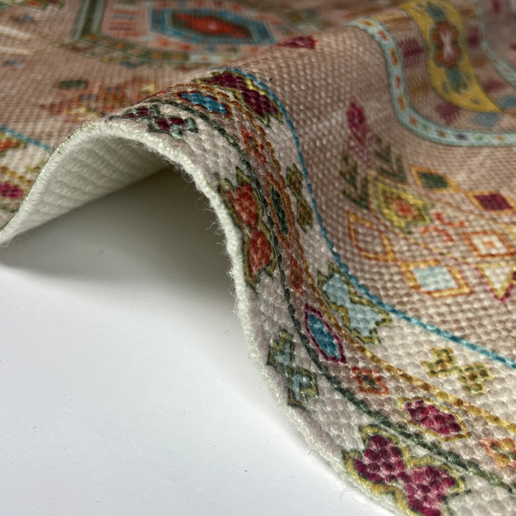 Rosa Vintage-Außenteppich Sunidhi mit fröhlichen Farben, speziell zum Dekorieren unter der Veranda.Lesen Sie mehr