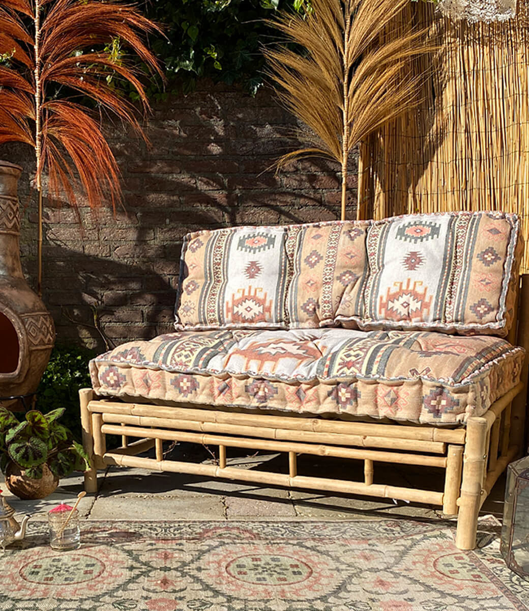 Set Palettenkissen in Beige Kelim für die Verwendung auf einer Europalette als GartenbankLesen Sie mehr