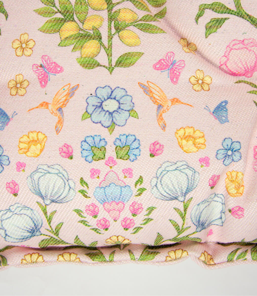 Palettenkissengarten hat ein unglaublich schönes Muster mit Blumen und Vögeln. Das Design wurde speziell für Merel im Wunderland entworfen und hat einen wunderschönen zartrosa Hintergrund mit anderen gemütlichen Pastellfarben. Ein echter Hingucker und sorgt für eine schöne Atmosphäre in Ihrem Garten! Die Kombination aus Rücken- und Sitzkissen sorgt für einen bequemen und weichen Sitz.