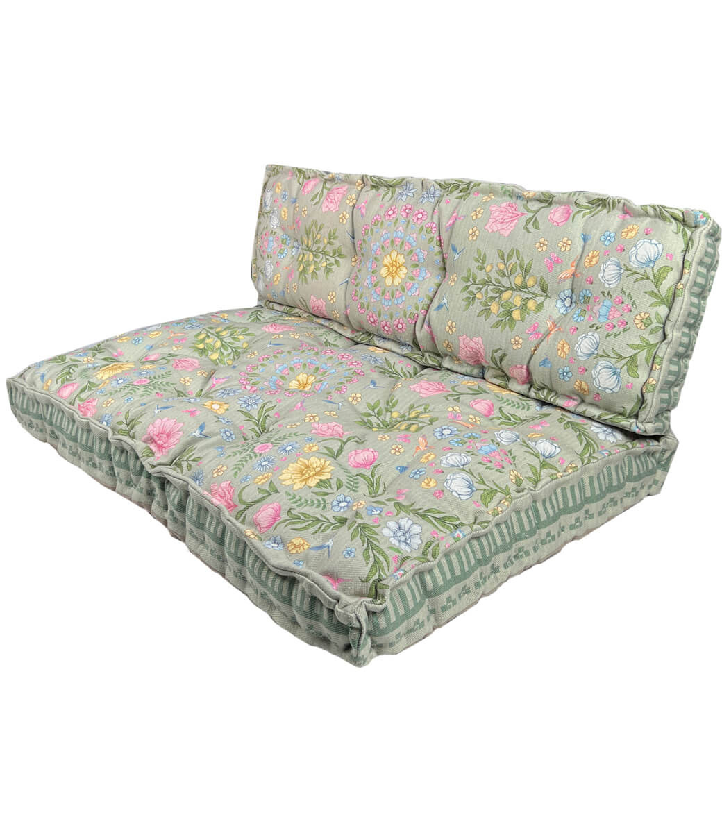 Palettenkissen Garden hat ein wunderschönes Design. Dieses Design voller fröhlicher Blumen und Vögel wurde speziell für Merel im Wunderland angefertigt. Es hat einen sanften grünen Hintergrund und gemütliche Pastellfarben als Details. Sowohl das Sitz- als auch das Rückenkissen sind wunderbar weich und die Kombination sorgt für ein angenehmes Sitzgefühl. Sie erhalten das komplette Set, bestehend aus 2 Paketen, per Post.