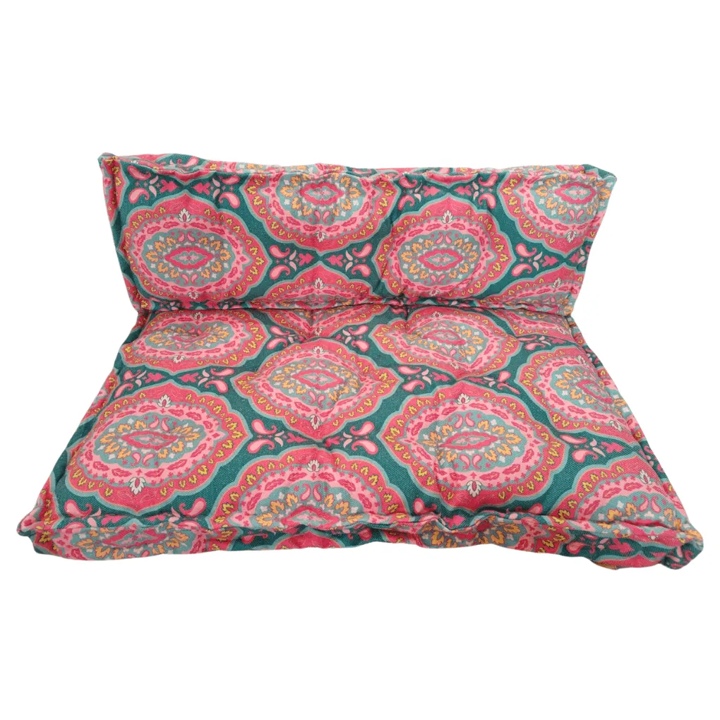 Dieses Palettenkissen ist mit fröhlichen, leuchtenden Pastellfarben wie Türkis und Rosa versehen. So einzigartig und sommerlich im Garten!