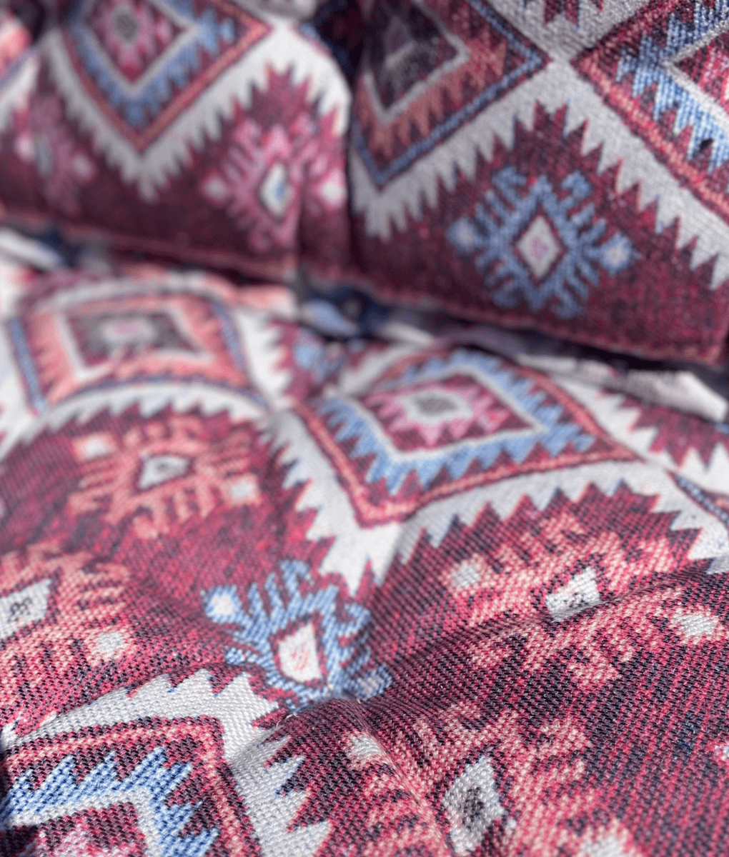 Wir haben auch Poufs in diesem Druck, kombinieren Sie diese mit dem Palettenset und schaffen Sie ein wunderschönes Ganzes.