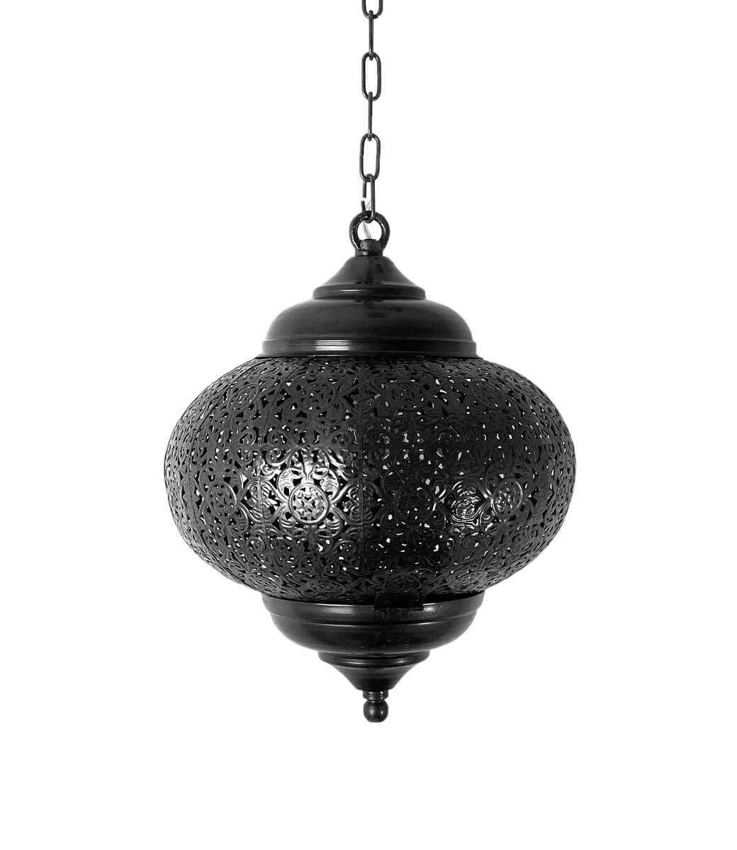Schwarze Hängelampe im orientalischen Stil mit goldener Innenseite im Laternen-DesignLesen Sie mehr