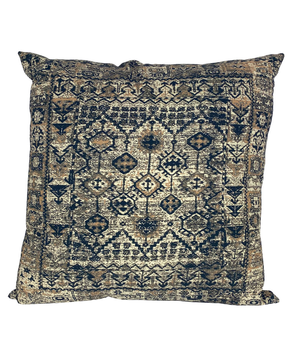 Kelim Azteken Kussen in Grau und Schwarz, auf Baumwolle gedruckt, in der Größe 50 x 50 cm und sehr gut gefüllt. Diese elegante Serie ist auch in Matratzen und anderen Dekokissen erhältlich. Der Stoff ist weiche Baumwolle. Der Druck befindet sich auf einer Seite, die andere Seite ist aus weißer Baumwolle mit Reißverschluss