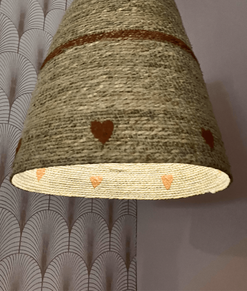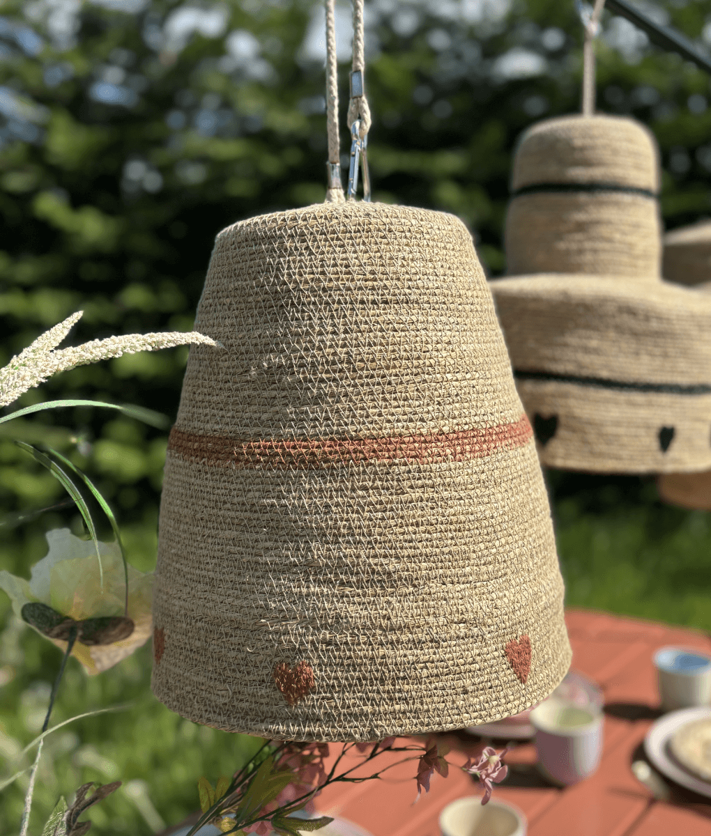 Stimmungsvoller Lampenschirm mit fröhlichen Herzen in Terra-Farbe, die von Hand bestickt sind. Die Lampe besteht aus Seegras und sieht natürlich aus! Es ist zum Beispiel ein wirklich cooler Artikel für den Garten, kann aber auch drinnen verwendet werden. Mit diesem gemütlichen Lampenschirm schaffen Sie einen schönen Ibiza-Stil in Ihrem Haus oder Garten. Dieses Modell ist hoch und schön rund, wodurch die Herzen schön hervorstechen.