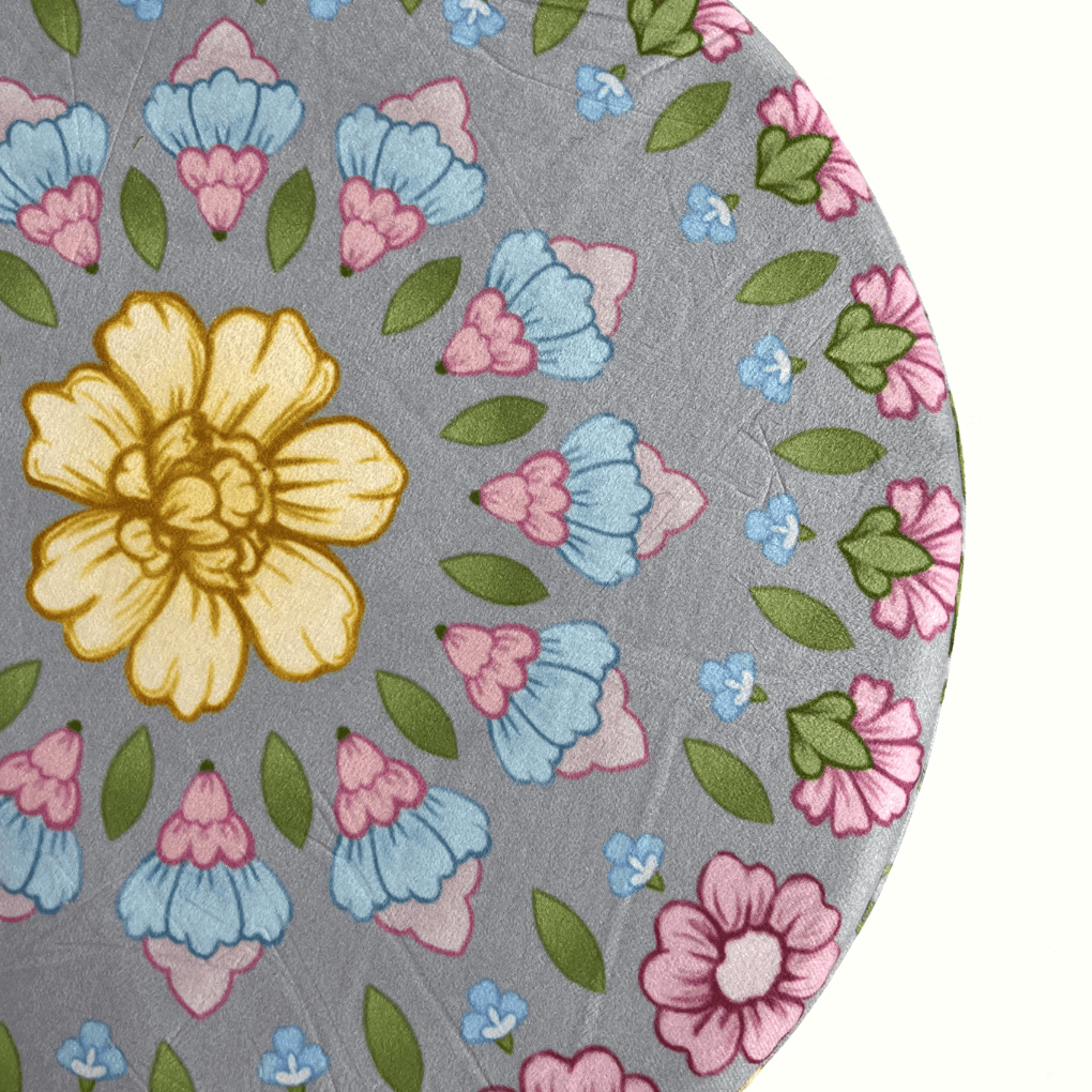 Schöner weicher Sitzhocker in unserem wunderschönen Gartendruck. Ausgestattet mit einer grau/lavendelähnlichen Farbe und fröhlichen Vögeln und Blumen im Design! Der Pouffe hat einen Samtstoff und als Krönung hat er auch einen coolen goldfarbenen Rand an der Unterseite.
