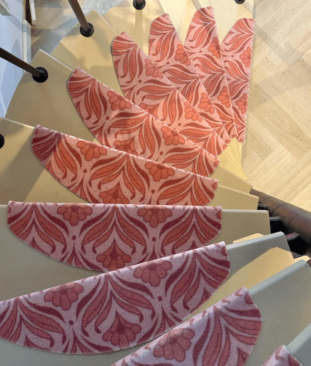Mach deine langweilige Treppe fröhlicher mit diesen tollen Treppenmatten, versehen mit unserem rosa Royalty-Print – so fröhlich!